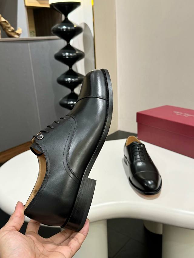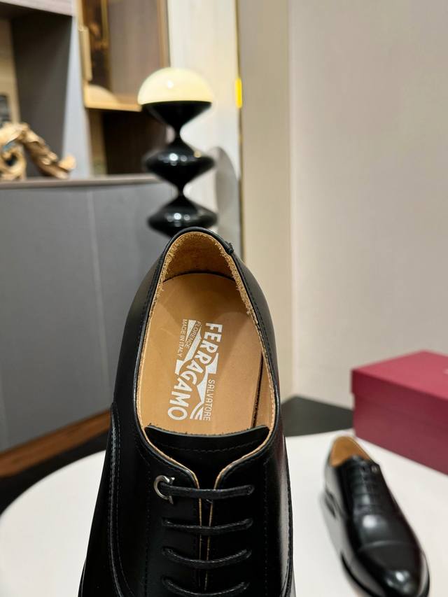 Ferragamo classic men's business leather shoes, imported black calfskin, leather lining, very soft leather, original genuine leather outsole, sizes 39-44, sizes 38, 45, 46, 47 are custom-made. (