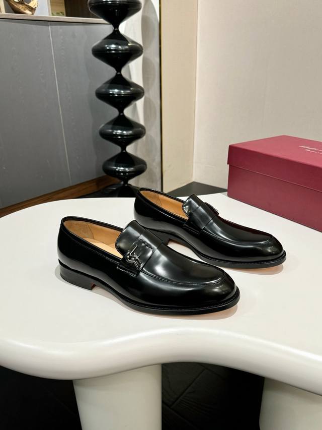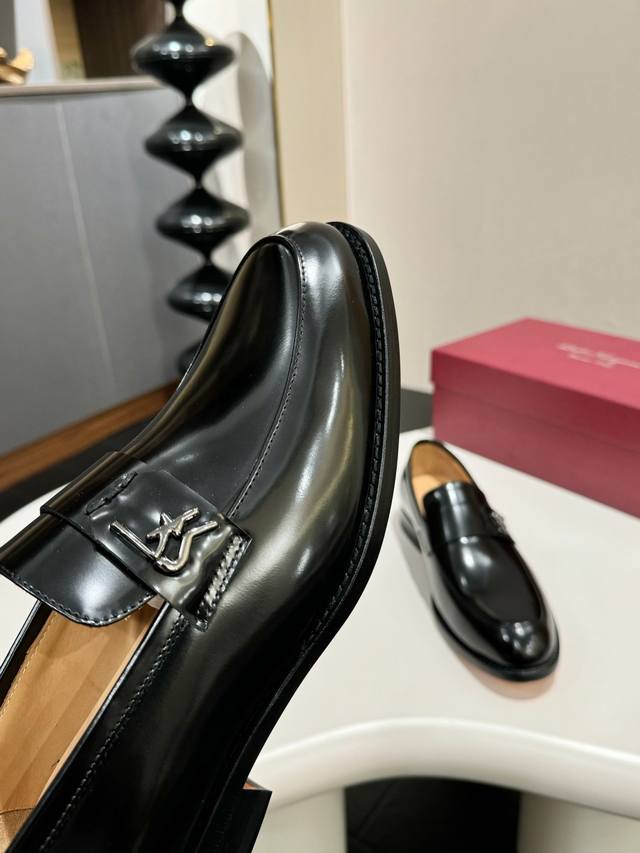 Ferragamo classic men's business leather shoes, imported black calfskin, leather