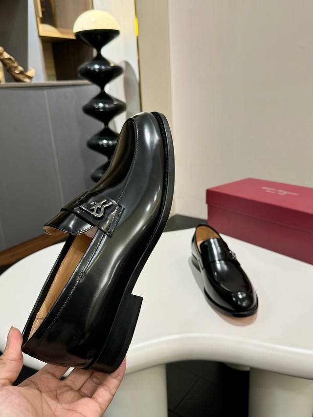 Ferragamo classic men's business leather shoes, imported black calfskin, leather lining, very soft leather, original genuine leather outsole, sizes 39-44, sizes 38, 45, 46, 47 are custom-made. (