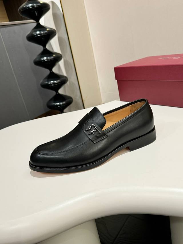 Ferragamo classic men's business leather shoes, imported black calfskin, leather