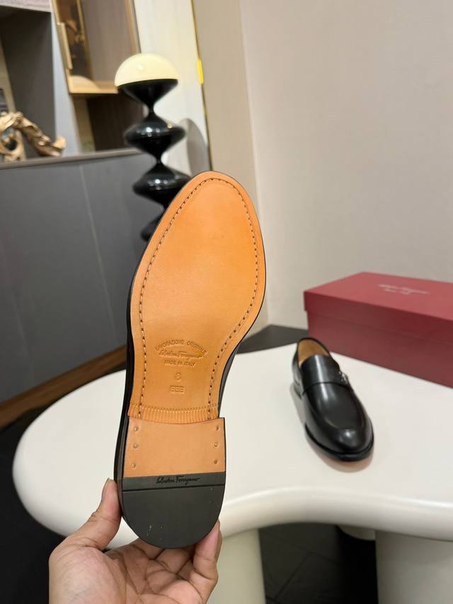 Ferragamo classic men's business leather shoes, imported black calfskin, leather lining, very soft leather, original genuine leather outsole, sizes 39-44, sizes 38, 45, 46, 47 are custom-made. (
