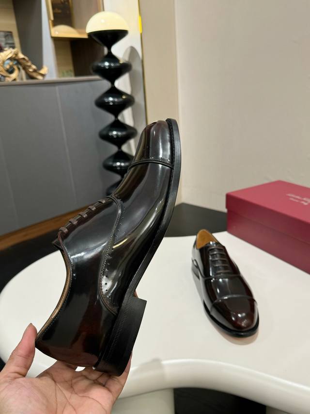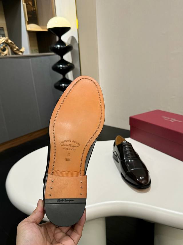 Ferragamo classic men's business leather shoes, imported black calfskin, leather lining, very soft leather, original genuine leather outsole, sizes 39-44, sizes 38, 45, 46, 47 are custom-made. (