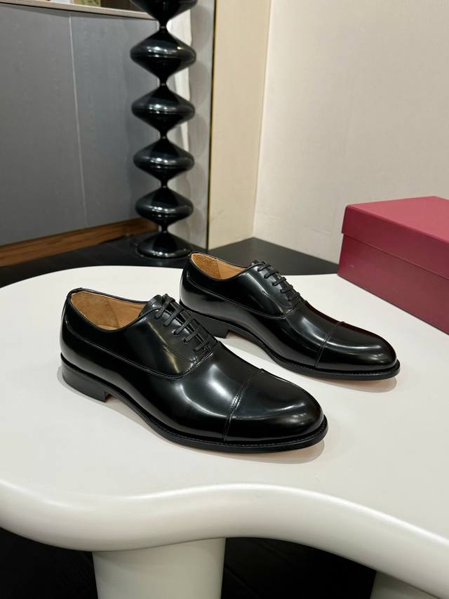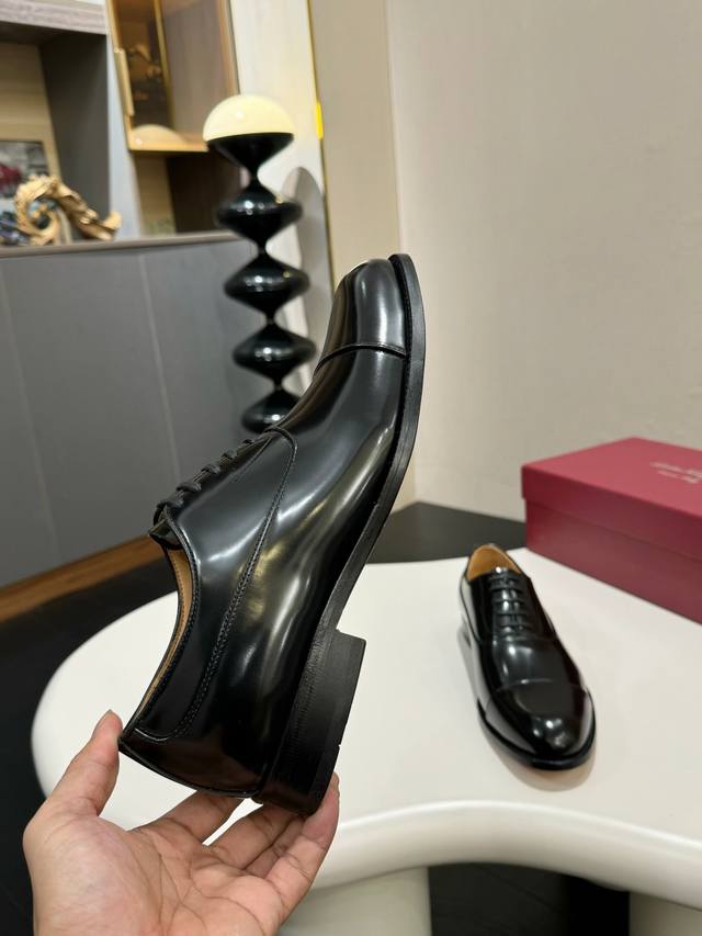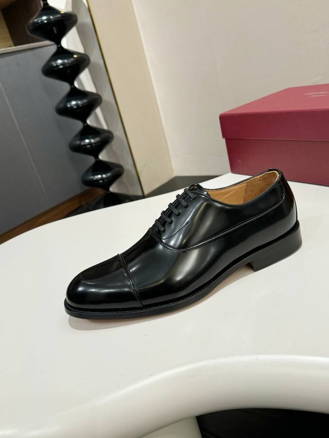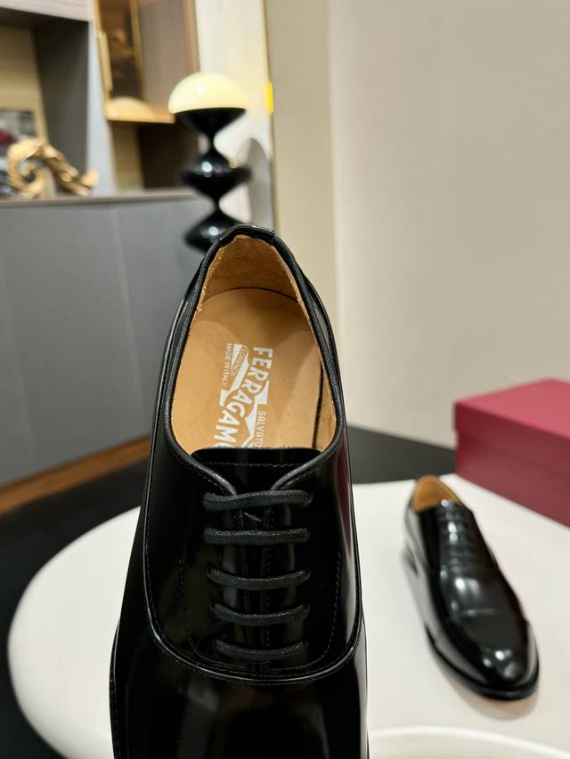 Ferragamo classic men's business leather shoes, imported black calfskin, leather