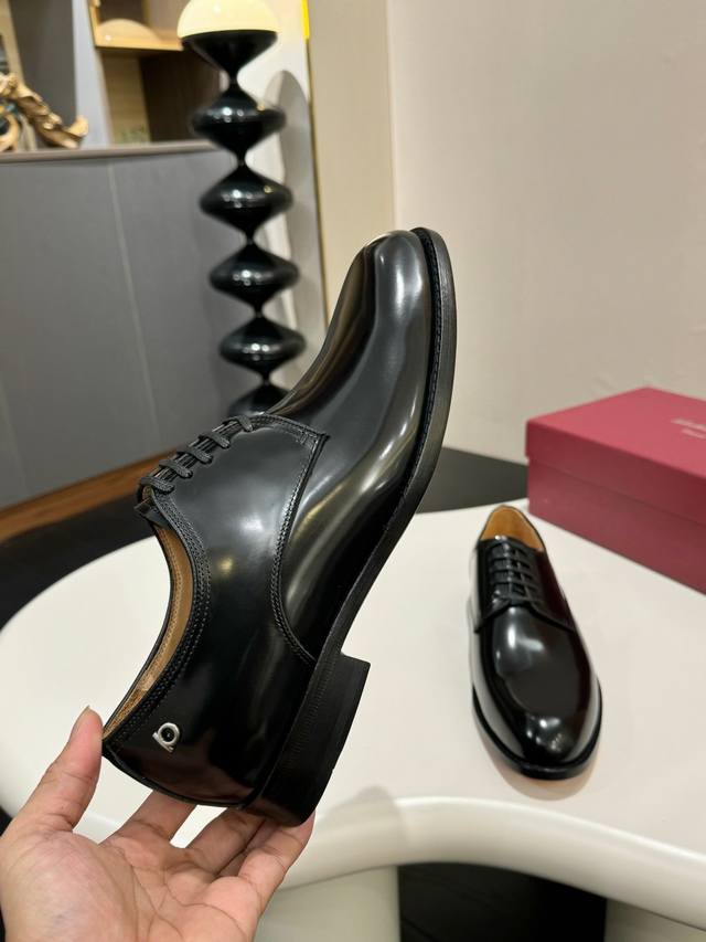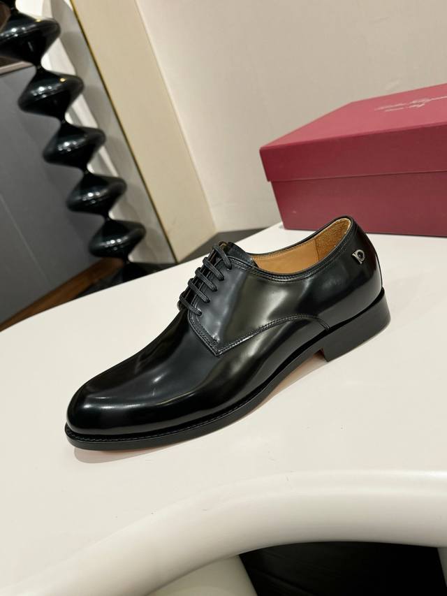 Ferragamo classic men's business leather shoes, imported black calfskin, leather