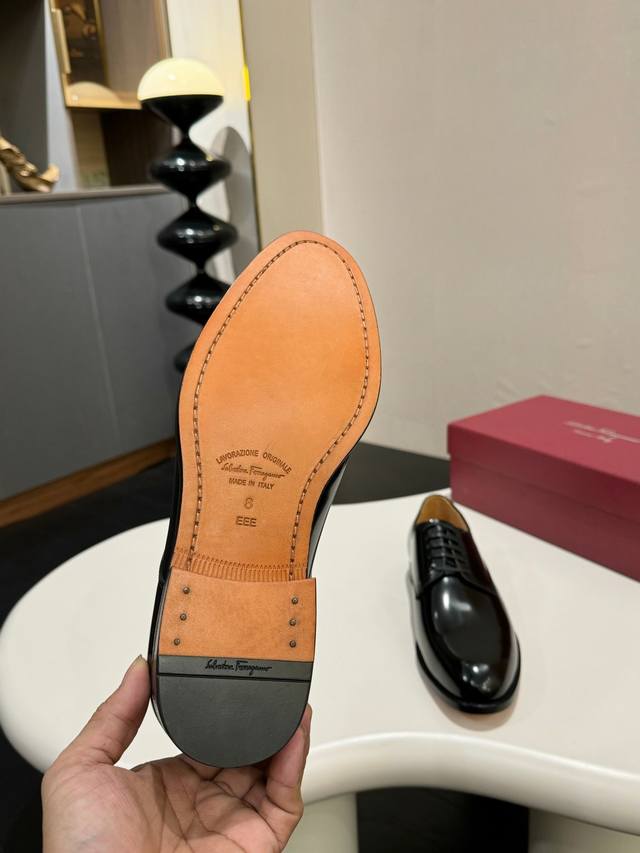 Ferragamo classic men's business leather shoes, imported black calfskin, leather lining, very soft leather, original genuine leather outsole, sizes 39-44, sizes 38, 45, 46, 47 are custom-made. (