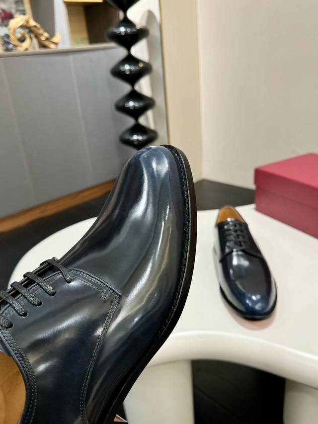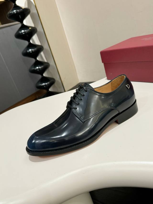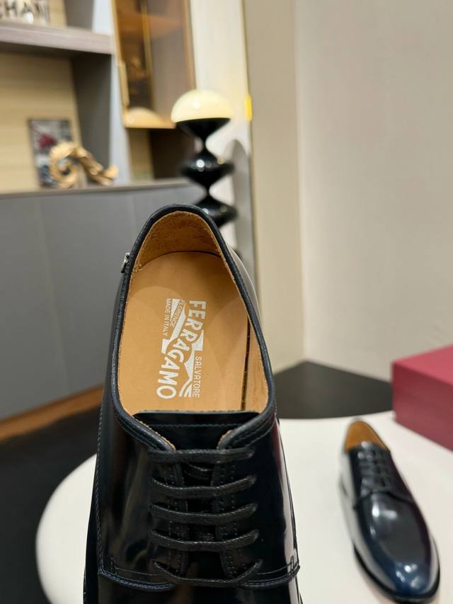 Ferragamo classic men's business leather shoes, imported black calfskin, leather