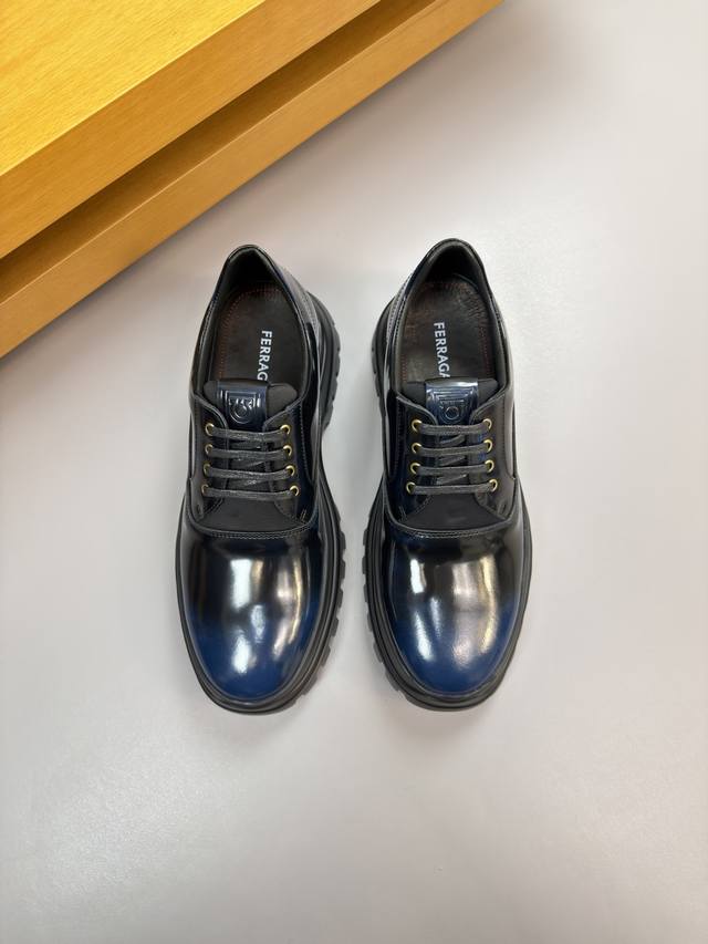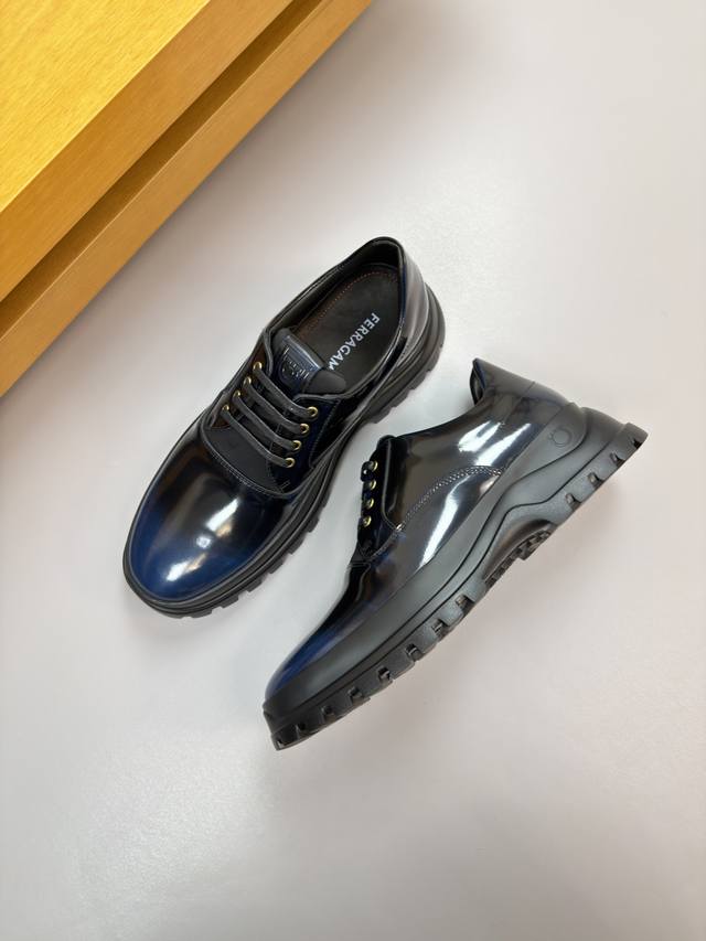 Ferragamo - High-end quality original single-piece formal leather shoes - Upper: Burnished split calfskin, air-pressed brand logo on the tongue, perfect splicing - Lining: Water-dyed cowhide - Outsole: Ultra-lightweight TPU foam; molded outsole - Super high quality control and exquisite workmanship: highlighting high-end luxury - Size: 39-44 38, 45, 46, custom orders available Fe0231 DDD