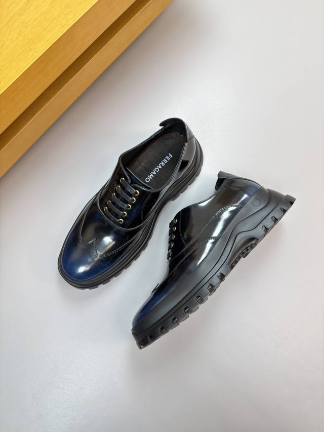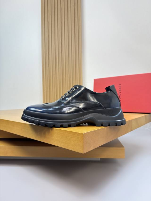 Ferragamo - High-end quality original single-piece formal leather shoes - Upper: Burnished split calfskin, perfectly stitched - Lining: Water-dyed cowhide - Outsole: Ultra-lightweight TPU foam; molded outsole - Super high quality control and exquisite workmanship: highlighting high-end luxury - Size: 39-44 38, 45, 46, custom orders available Fe0231