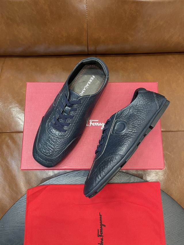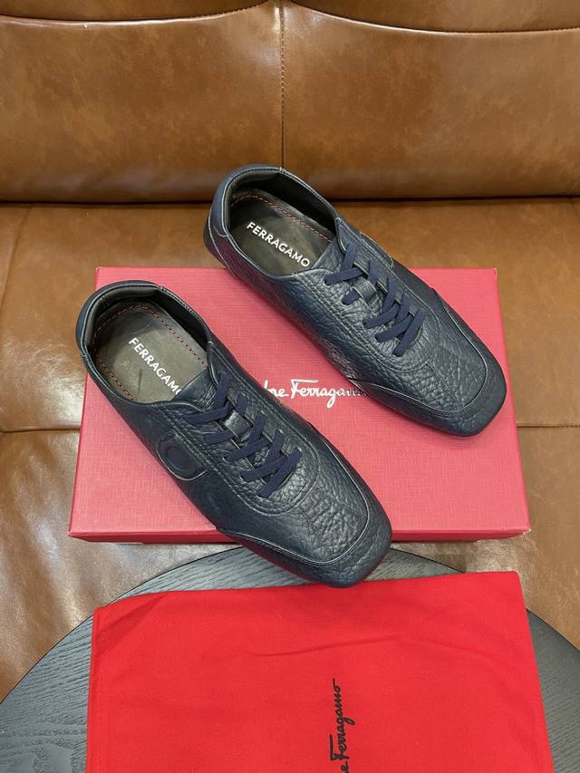 Ferragamo - High-end quality - Upper: Tumbled leather, Nappa leather, brand logo stitched on the shoe body - Lining: Leather, insole; water-dyed leather - Outsole: TPR rubber foam; two-tone molded outsole - Super high quality control and exquisite workmanship: highlighting high-end luxury - Size: 38-44, 45 can be customized