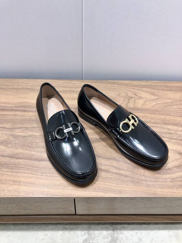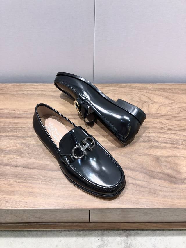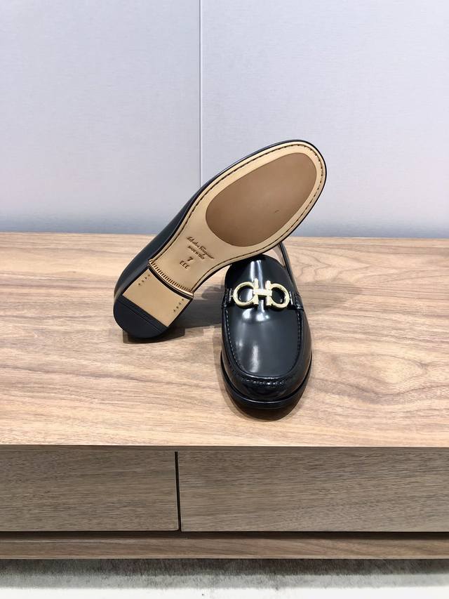 Ferragamo men's leather shoes, imported cowhide upper, exquisite double-sided buckle, water-dyed cowhide lining, genuine leather outsole, standard sizes 38-44 45, custom made, no returns or exchanges, in stock