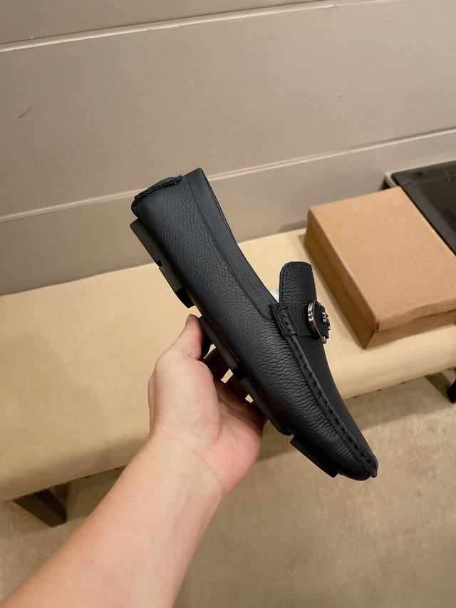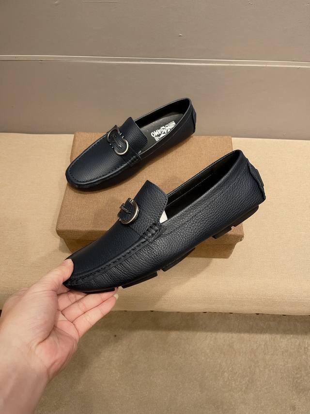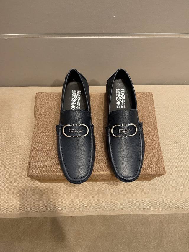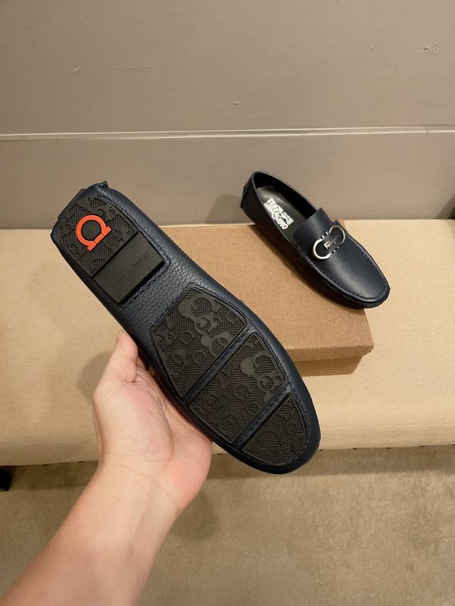 Ferragamo two-color shoes, black and blue, official flagship store men's business casual loafers, latest trendy style, hot selling on the official website, original version, 1:1 replica of those in stores, Italian original top-grain lychee textured cowhide upper + absolutely high-end original non-slip outsole, comfortable cowhide lining made of genuine materials, comfort speaks for itself, double the prestige when gifting, absolutely the focus, standard size 37-47 DDD