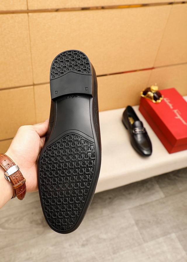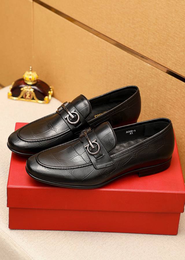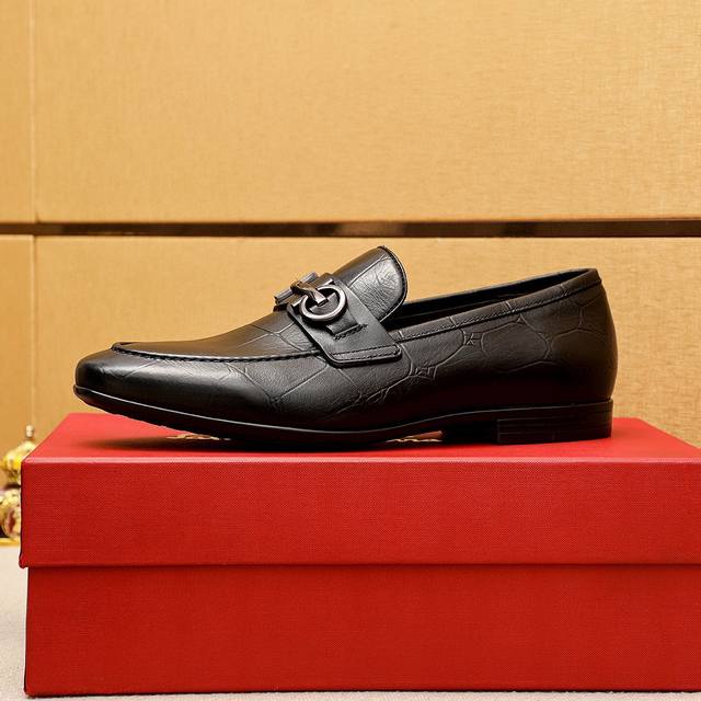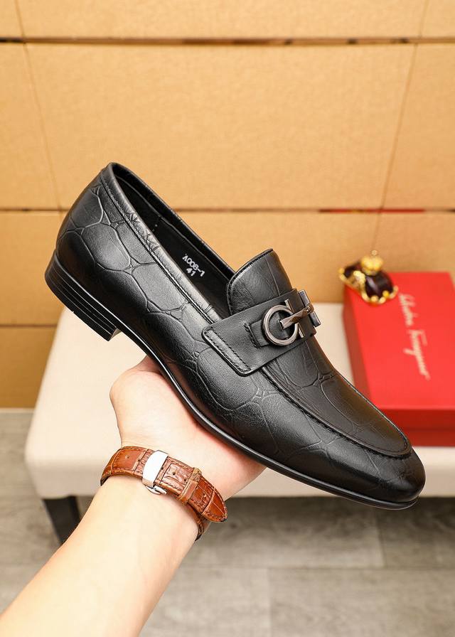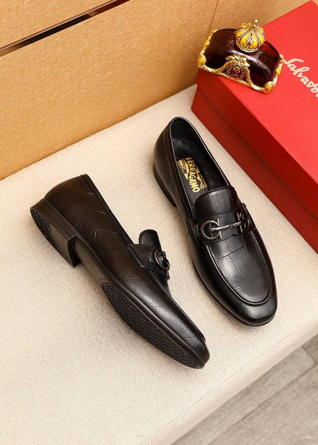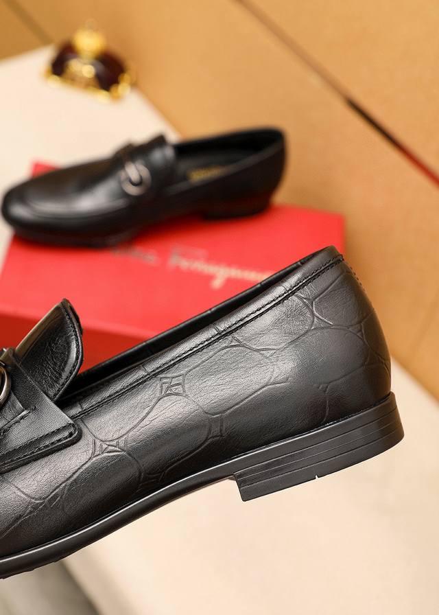 Product Brand: Ferragamo Casual Leather Shoes True to Size: 38-44, 45 (Custom Made) Materials: Selected imported top-grain calfskin embossed upper + classic hardware buckles, imported water-dyed cowhide lining. Strong three-dimensional visual effect, rubber outsole. Colors: 1 color available.