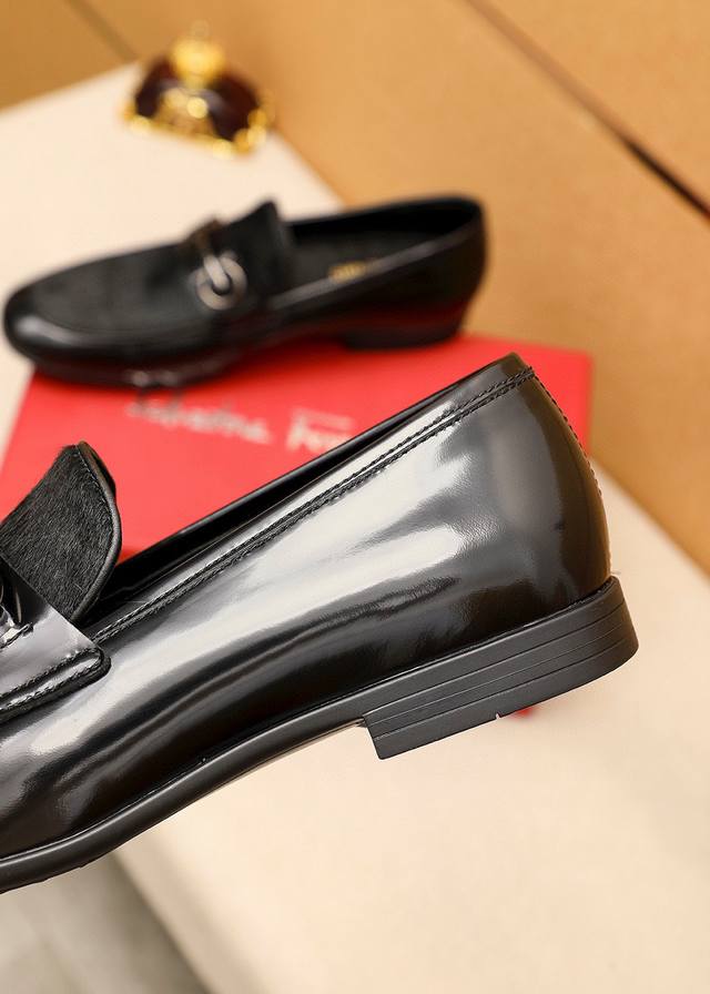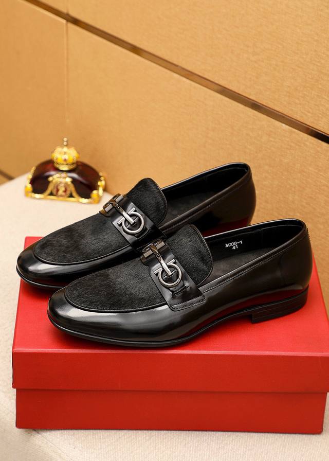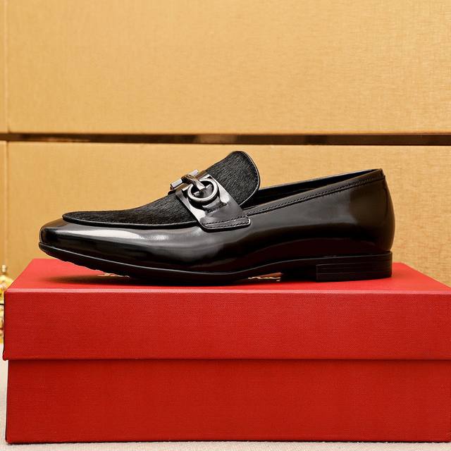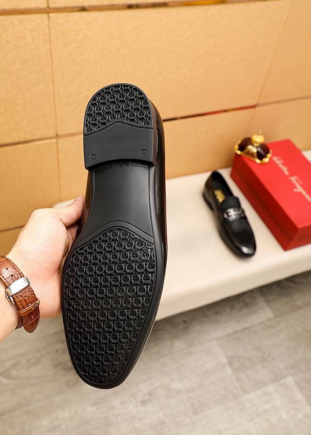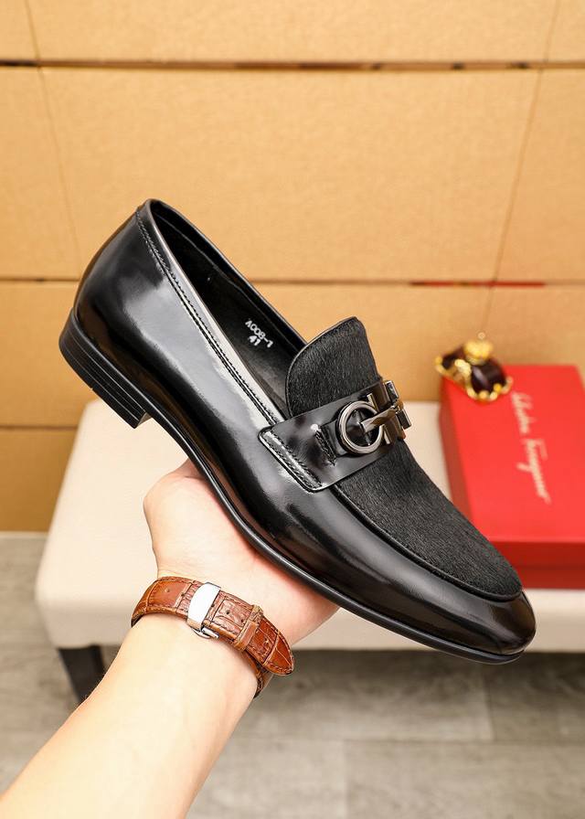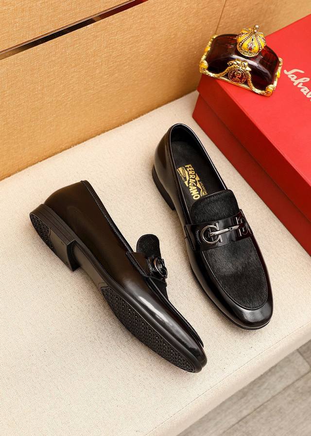 Product Brand: Ferragamo Casual Leather Shoes True to Size: 38-44, 45 (Custom Sizes Available) Materials: Selected imported top-grain calfskin upper + classic hardware buckles, imported water-dyed cowhide lining. Strong three-dimensional visual effect, rubber outsole. Colors: 1 color available.
