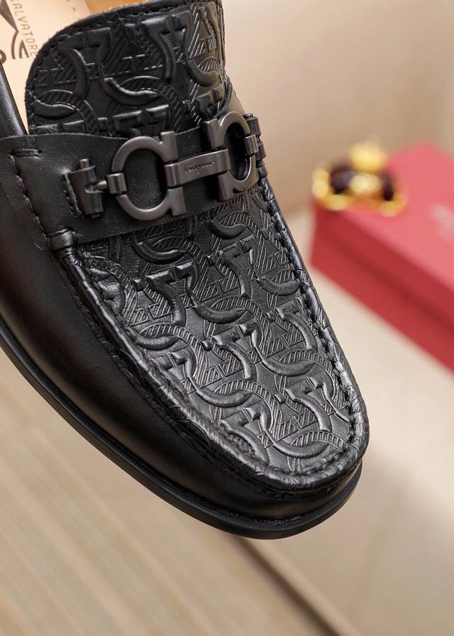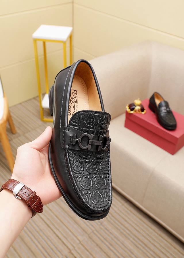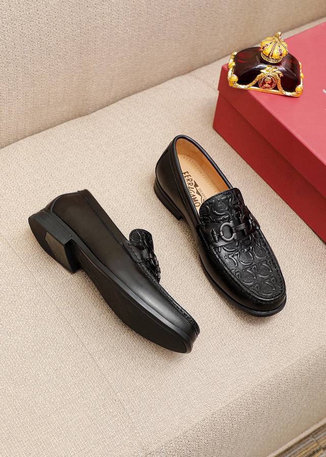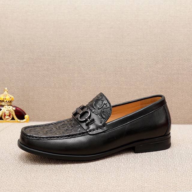 Product Trademark: Ferragamo Casual Leather Shoes DDD True Sizes: 38-44, 45 (Custom Made) DDD Product Materials: Selected imported calfskin embossed upper + classic hardware buckles, imported water-dyed cowhide lining. Strong three-dimensional visual effect, original outsole DDD Colors: 1 color available DDD