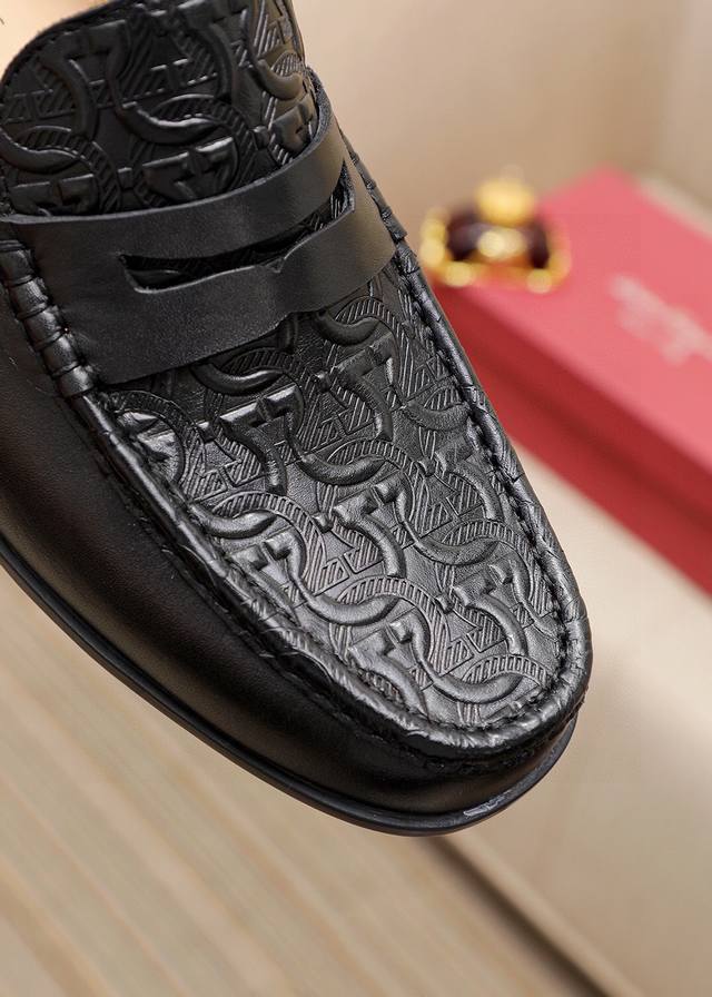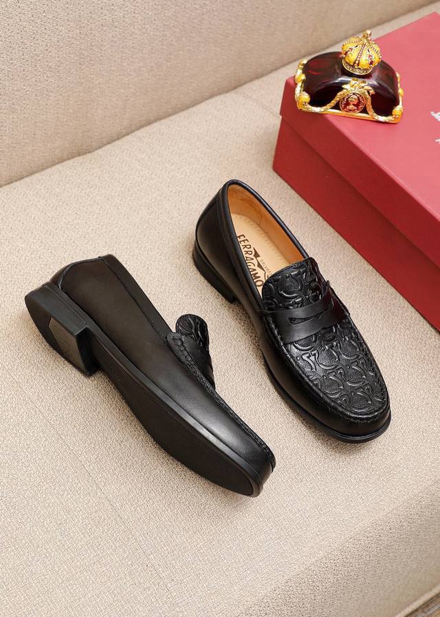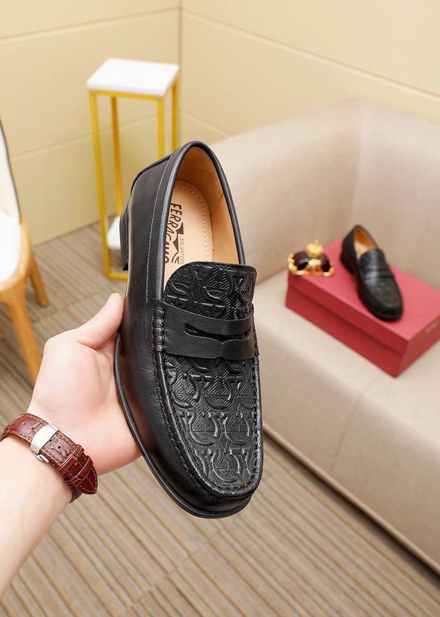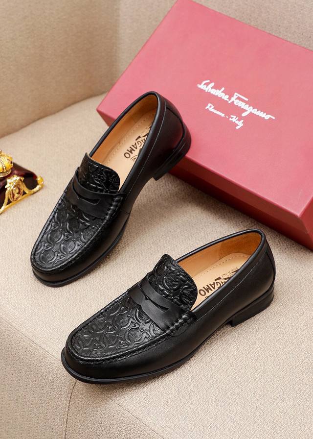 Product Trademark: Ferragamo Casual Leather Shoes DDD True Sizes: 38-44, 45 (Custom Made) DDD Product Materials: Selected imported calfskin embossed upper, imported water-dyed cowhide lining. Strong three-dimensional visual effect, original outsole DDD Colors: 1 color available DDD