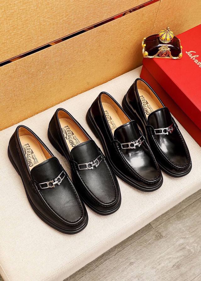 Product Trademark: Ferragamo Casual Leather Shoes DDD True Sizes: 38-44, 45 (Custom Made) DDD Product Materials: Selected imported top-grain split-edge cowhide upper + luxury hardware buckles, imported water-dyed cowhide lining. Strong three-dimensional visual effect, original outsole DDD Colors: 2 leather options DDD