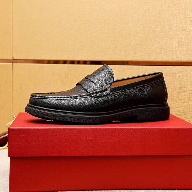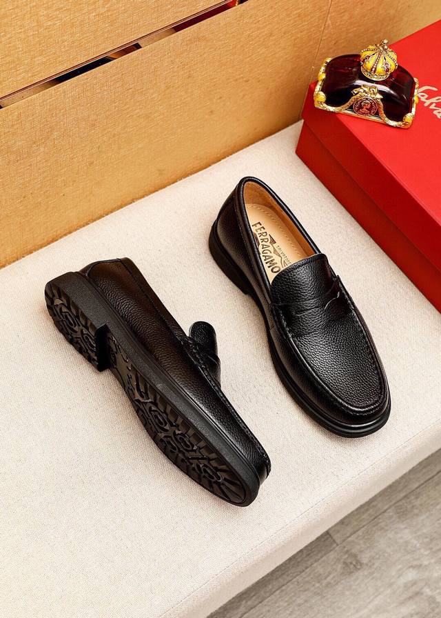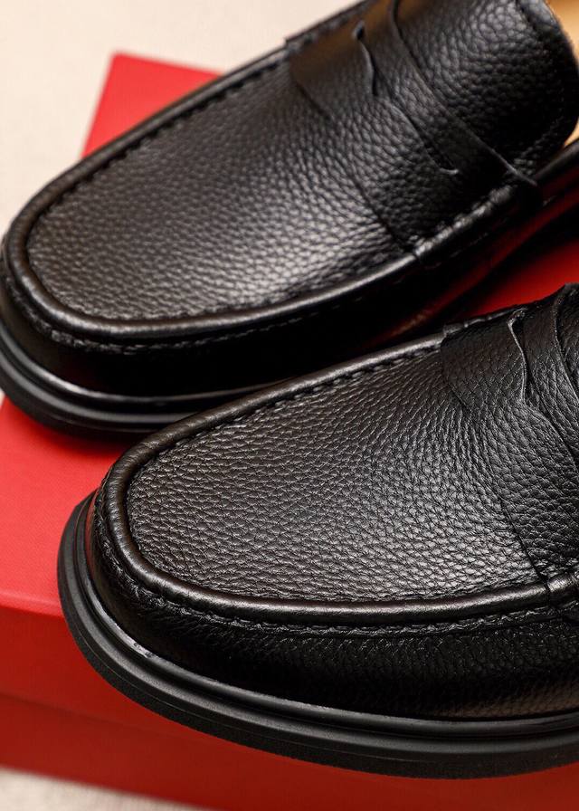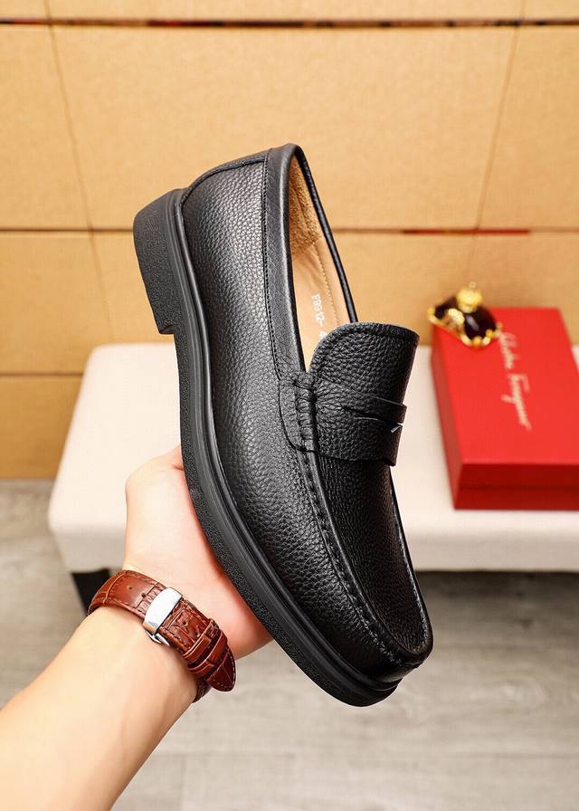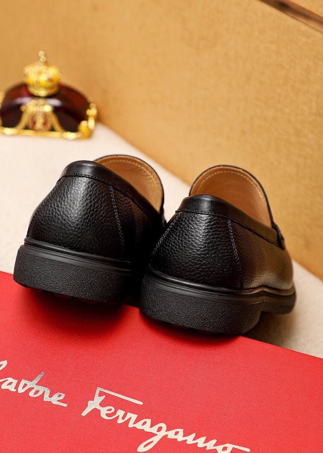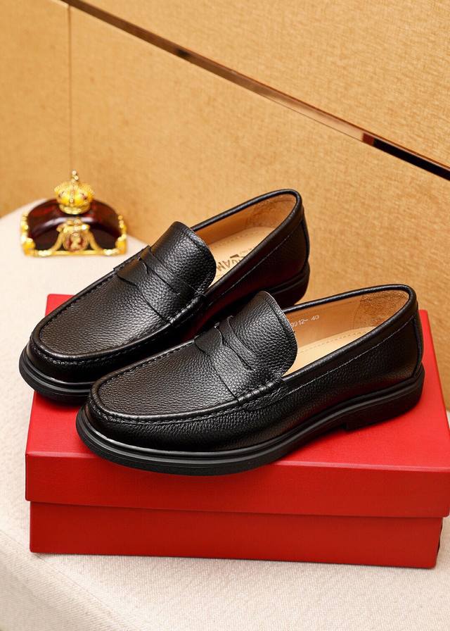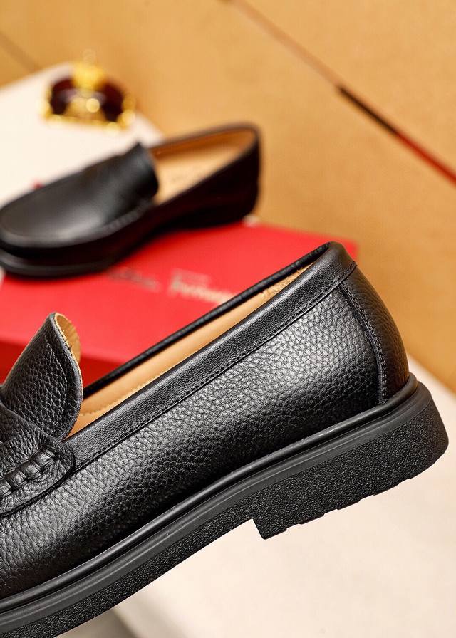 Product Trademark: Ferragamo Casual Leather Shoes DDD True Sizes: 38-44, 45 (Custom Made) DDD Product Materials: Selected imported top-grain calfskin leather upper with lychee grain, imported water-dyed cowhide lining. Strong three-dimensional visual effect, original outsole DDD Colors: 3 leather options DDD