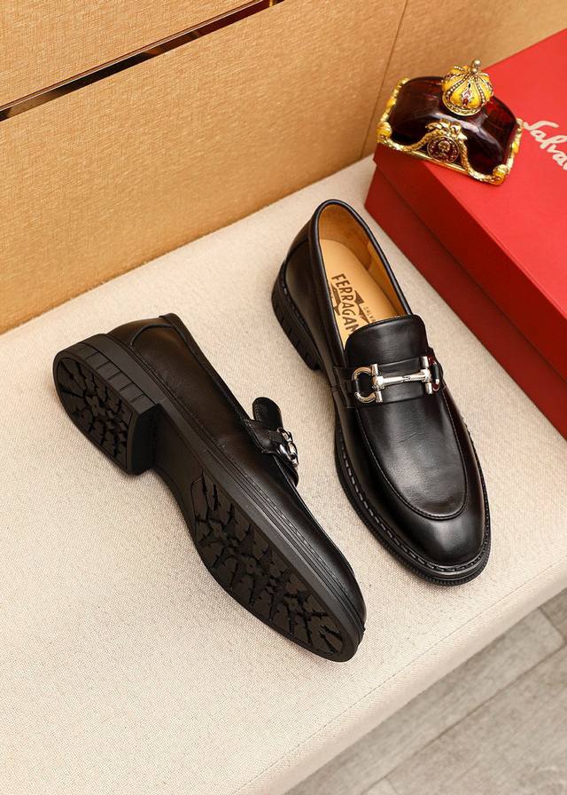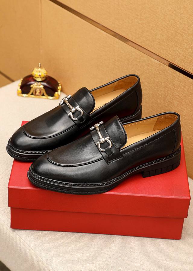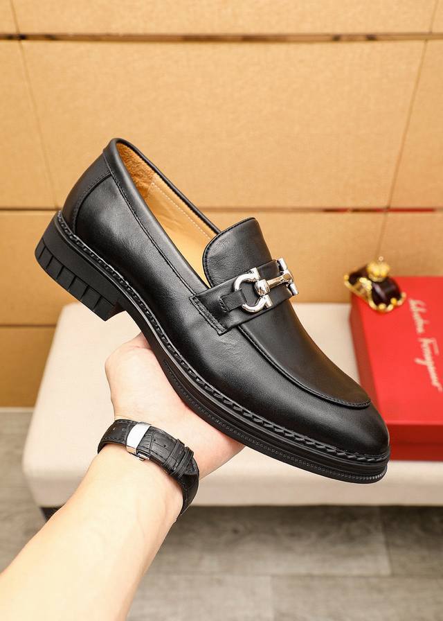 Product Trademark: Ferragamo Casual Leather Shoes DDD True Sizes: 38-44, 45-46 (Custom Made) DDD Product Materials: Selected imported top-grain calfskin upper + luxurious hardware buckles, imported water-dyed cowhide lining. Strong three-dimensional visual effect, rubber outsole DDD Colors: 1 color available DDD