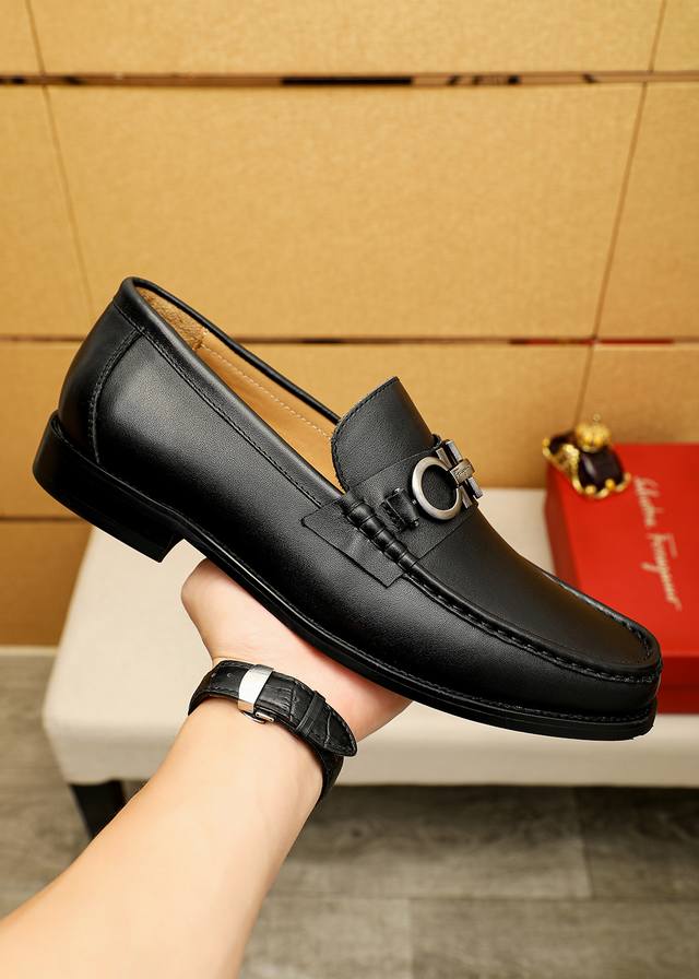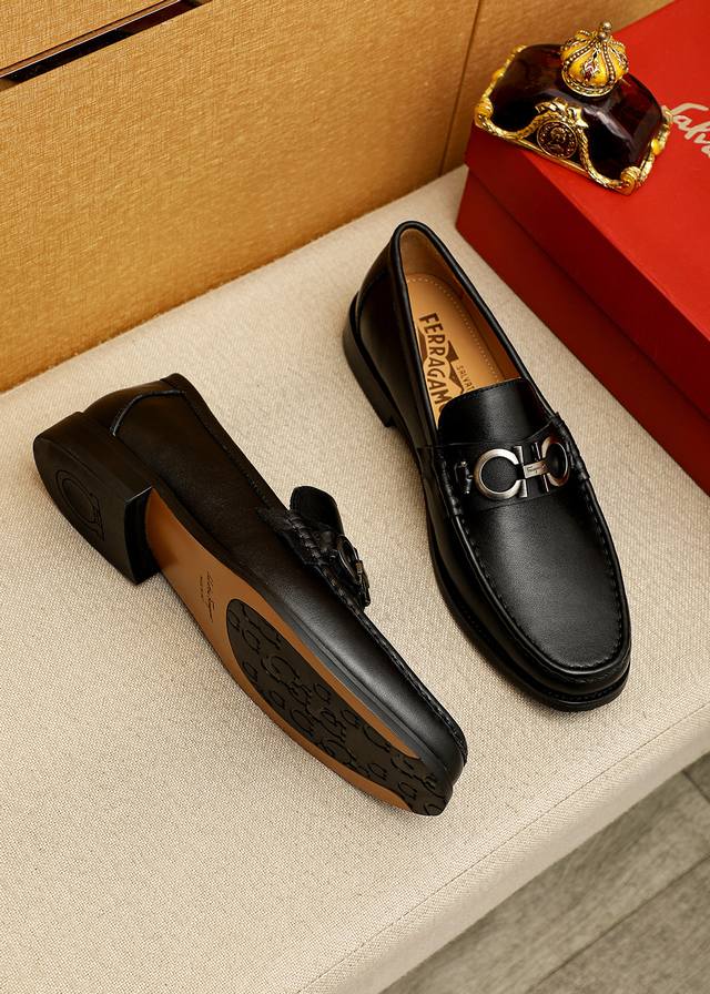 Product Trademark: Ferragamo Casual Leather Shoes DDD True Sizes: 38-44, 45-46 (Custom Made) DDD Product Materials: Selected imported top-grain calfskin upper + luxurious hardware buckles, imported water-dyed cowhide lining. Strong three-dimensional visual effect, original outsole DDD Colors: 1 color available DDD