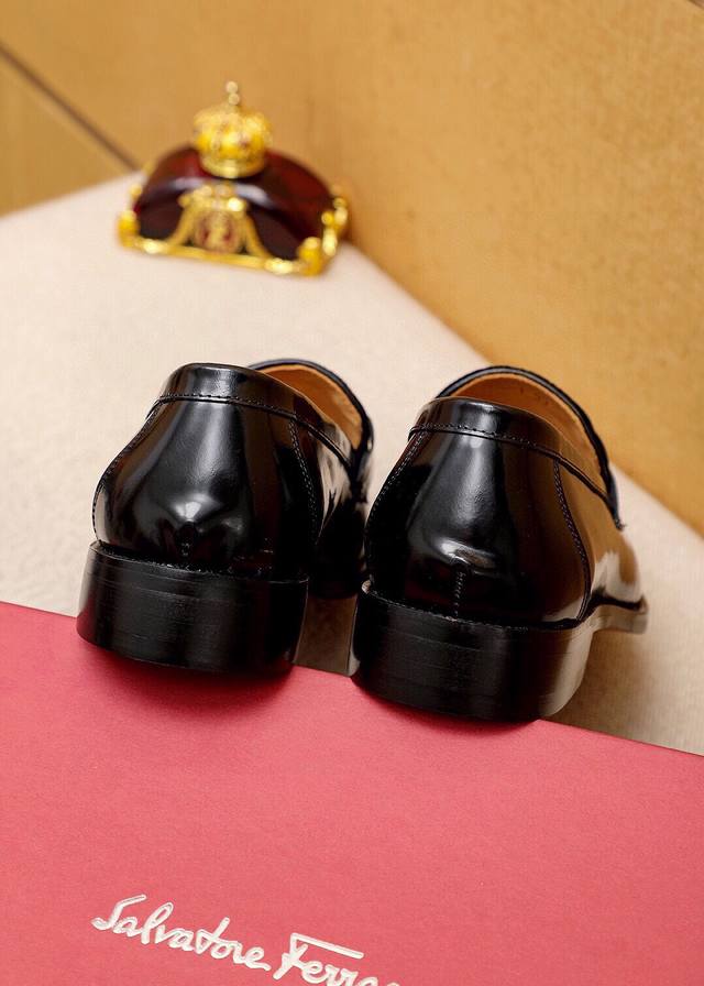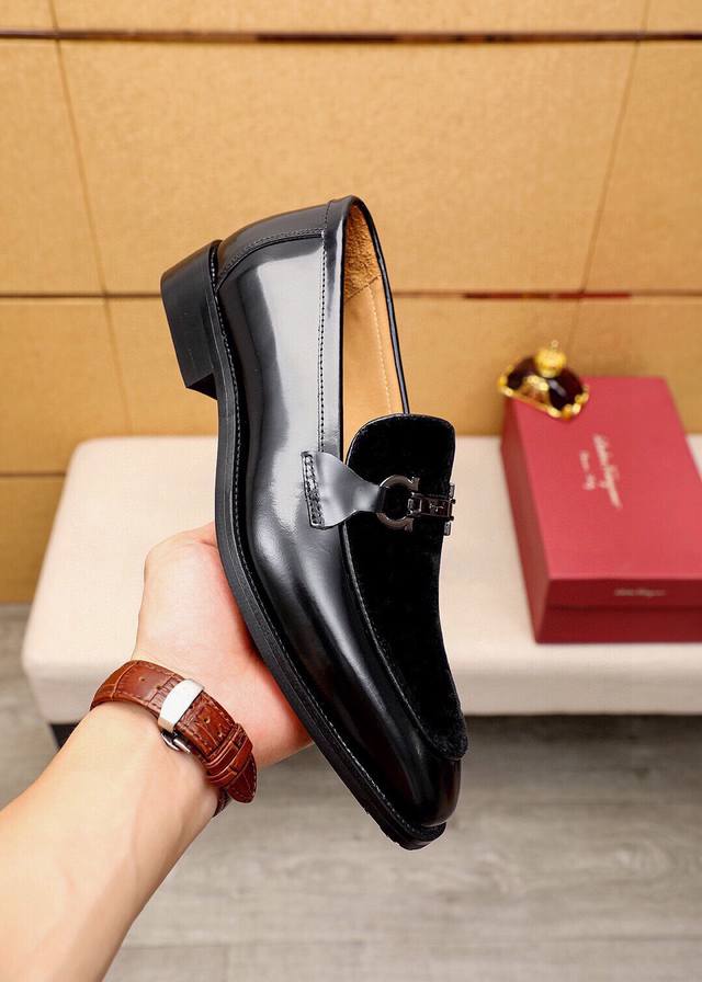 Product Trademark: Ferragamo Casual Leather Shoes True to Size: 38-44, 45, 46, 47 (Custom Made) Materials: Selected imported top-grain high-gloss calfskin upper + luxurious hardware buckles, imported water-dyed cowhide lining. Strong three-dimensional visual effect, rubber outsole. Colors: 2 colors available.