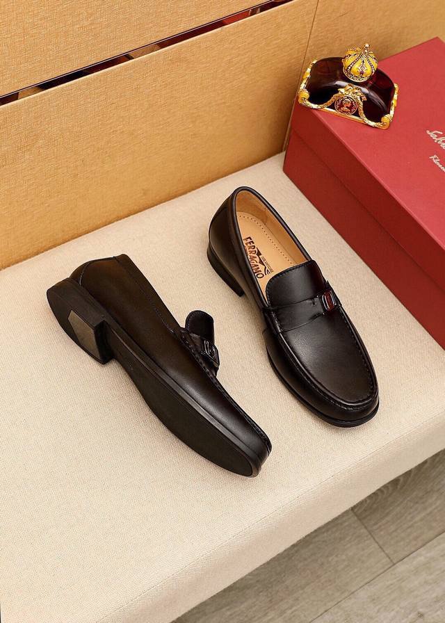Product Trademark: Ferragamo Casual Leather Shoes True to Size: 38-44, 45 (Custom Made) Materials: Selected imported top-grain calfskin upper + luxury hardware buckles, imported water-dyed cowhide lining. Strong three-dimensional visual effect, original rubber outsole. Colors: 4 leather options available.