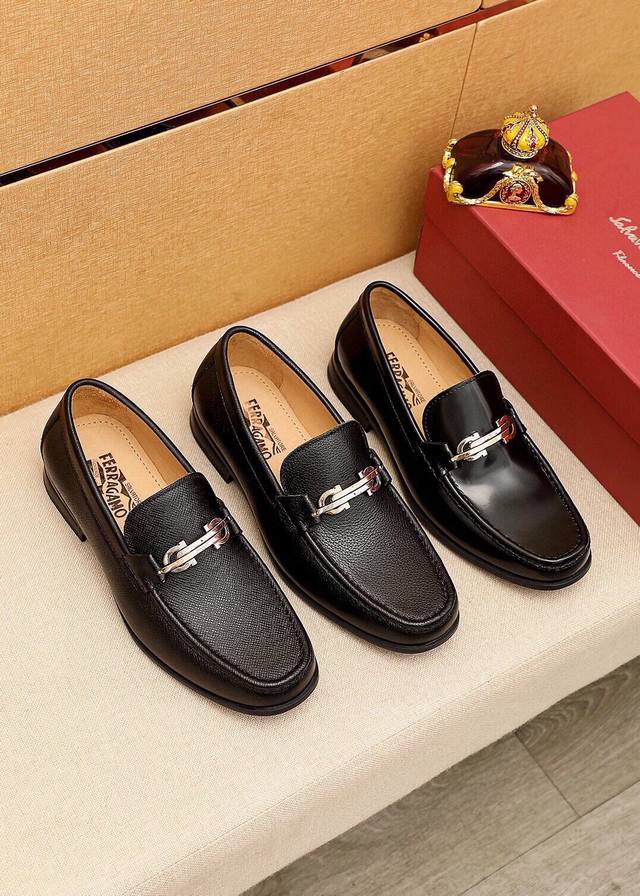 Product Trademark: Ferragamo Casual Leather Shoes True to Size: 38-44, 45 (Custom Made) Materials: Selected imported top-grain cross-grain cowhide upper + luxury hardware buckles, imported water-dyed cowhide lining. Strong three-dimensional visual effect, original rubber outsole. Colors: 3 leather options available.