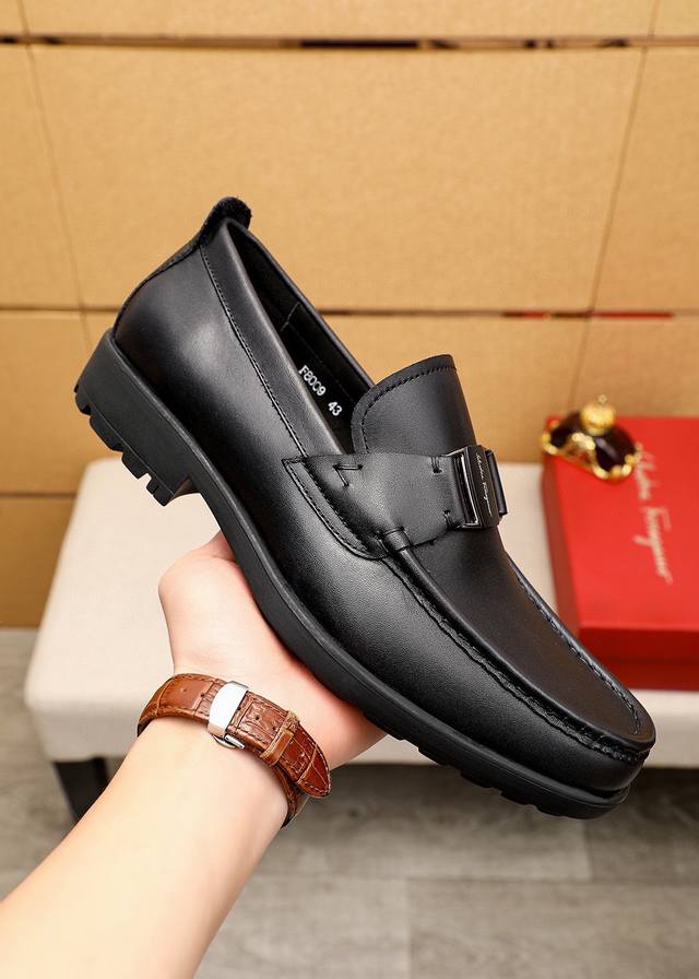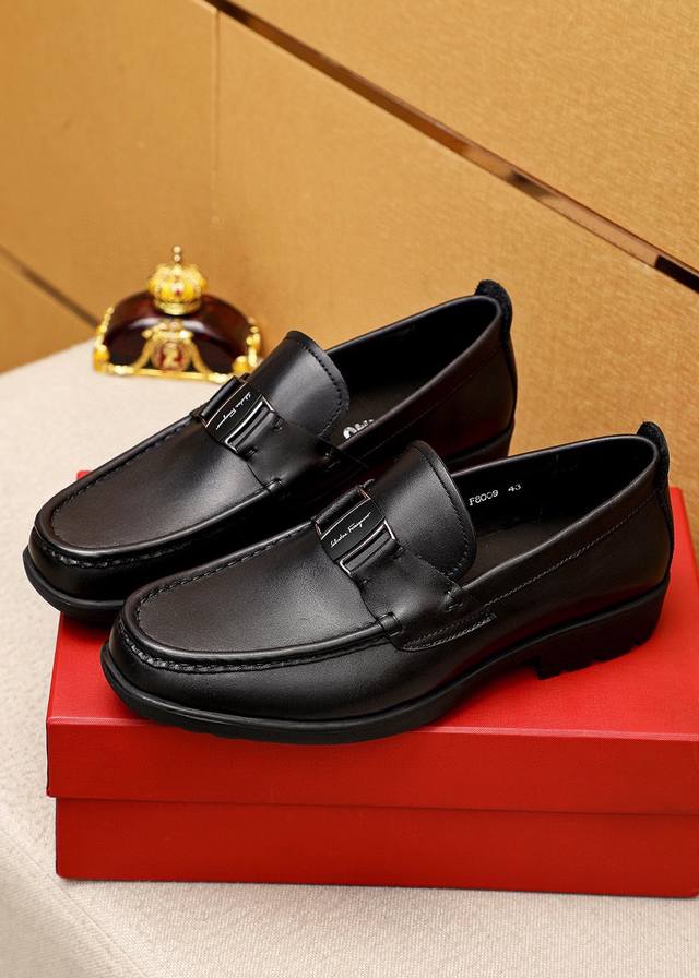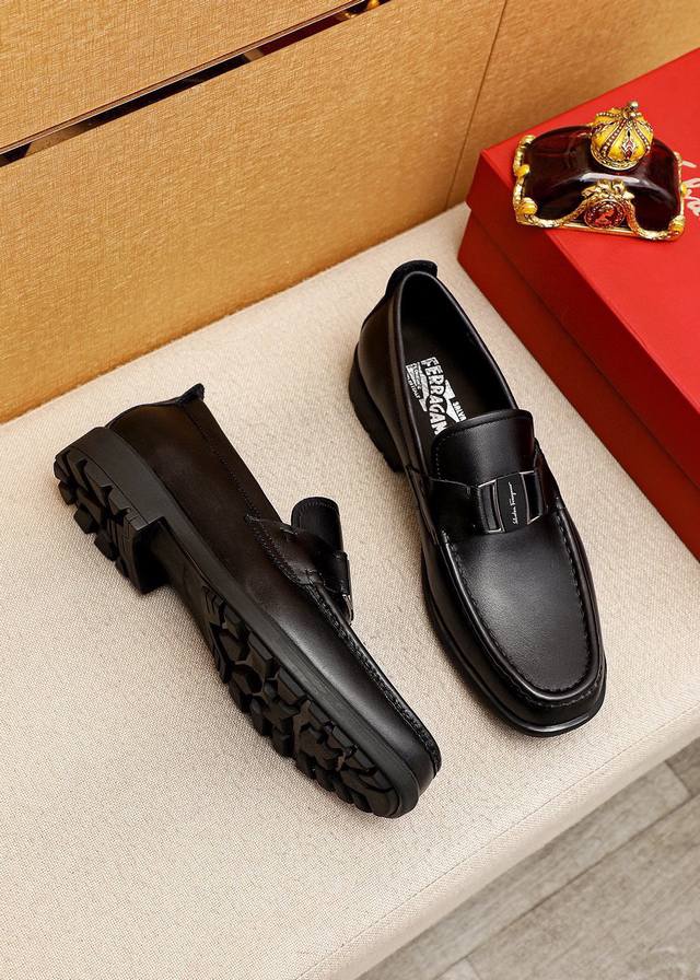 Product Trademark: Ferragamo Casual Leather Shoes True to Size: 38-44, 45-46 (Custom Made) Materials: Selected imported calfskin upper + classic hardware buckles, imported water-dyed cowhide lining. Strong three-dimensional visual effect, rubber outsole. Colors: 1 color available.