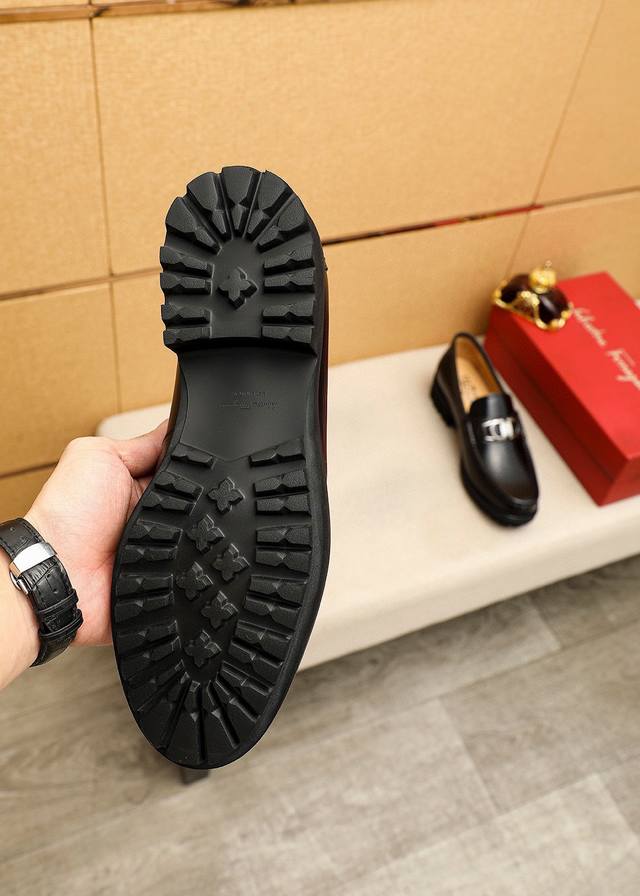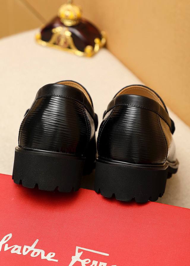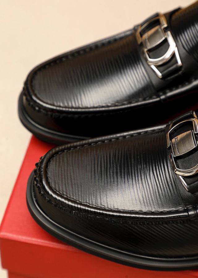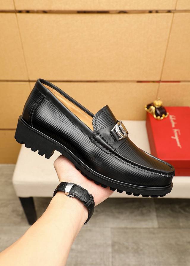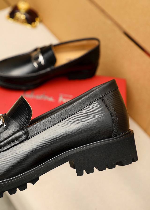 Product Trademark: Ferragamo Casual Leather Shoes True to Size: 38-44, 45-46 (Custom Made) Materials: Selected imported calfskin embossed upper + classic hardware buckles, imported water-dyed cowhide lining. Strong three-dimensional visual effect, original outsole. Colors: 1 color available.