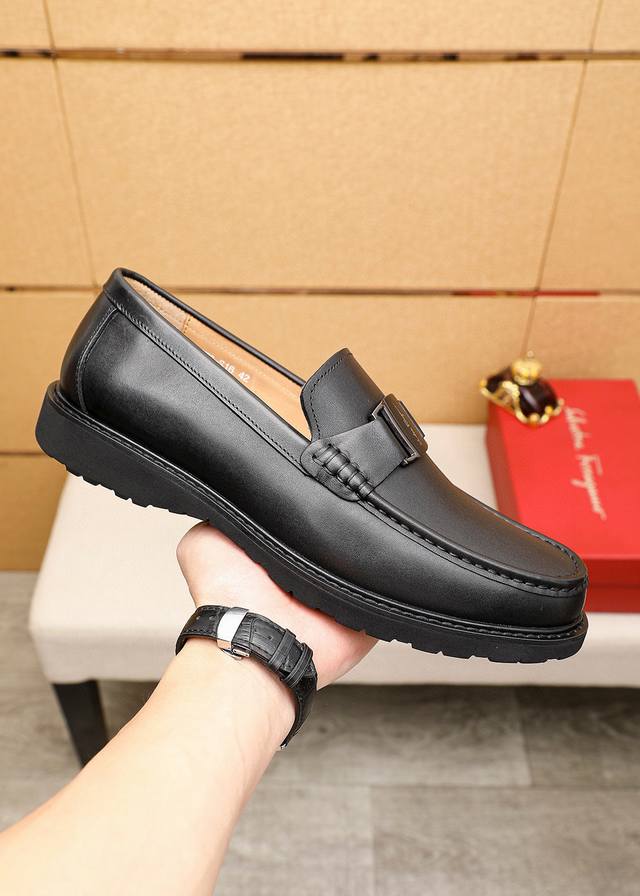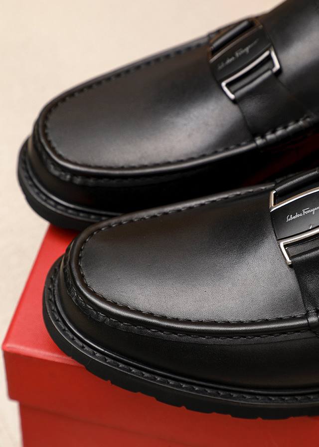 Product Trademark: Ferragamo Casual Leather Shoes True to Size: 39-44, 45 (Custom Made) Materials: Selected imported top-grain calfskin upper + luxurious hardware buckles, imported water-dyed cowhide lining. Strong three-dimensional visual effect, original rubber outsole. Colors: 1 color available.