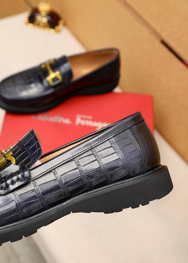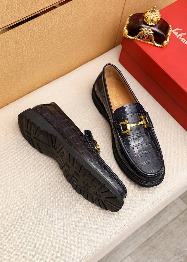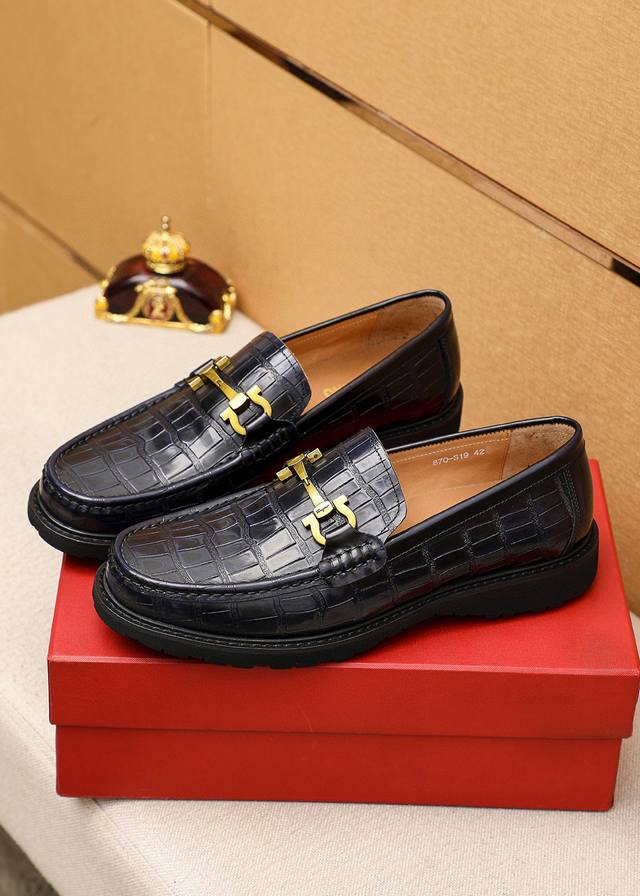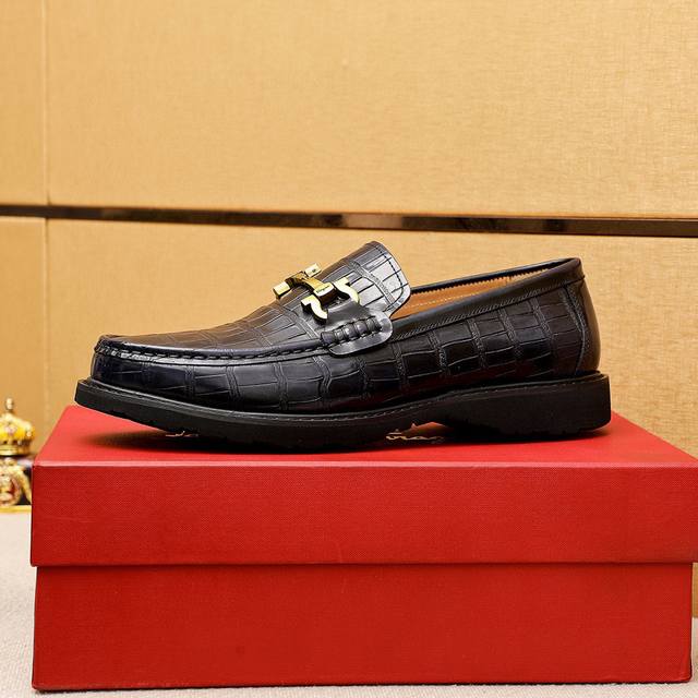 Product Trademark: Ferragamo Casual Leather Shoes True to Size: 39-44 45. Custom Made Materials: Selected imported top-grain calfskin embossed upper + luxurious hardware buckles, imported water-dyed cowhide lining. Strong three-dimensional visual effect, original rubber outsole. Colors: 3 colors available.