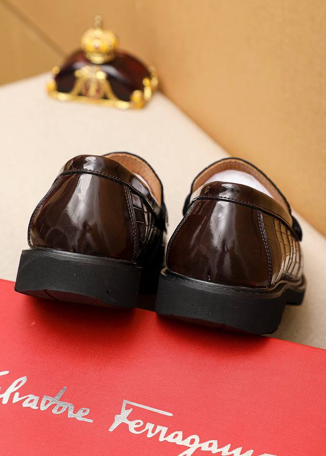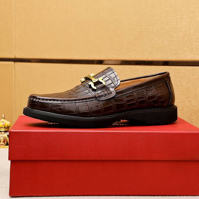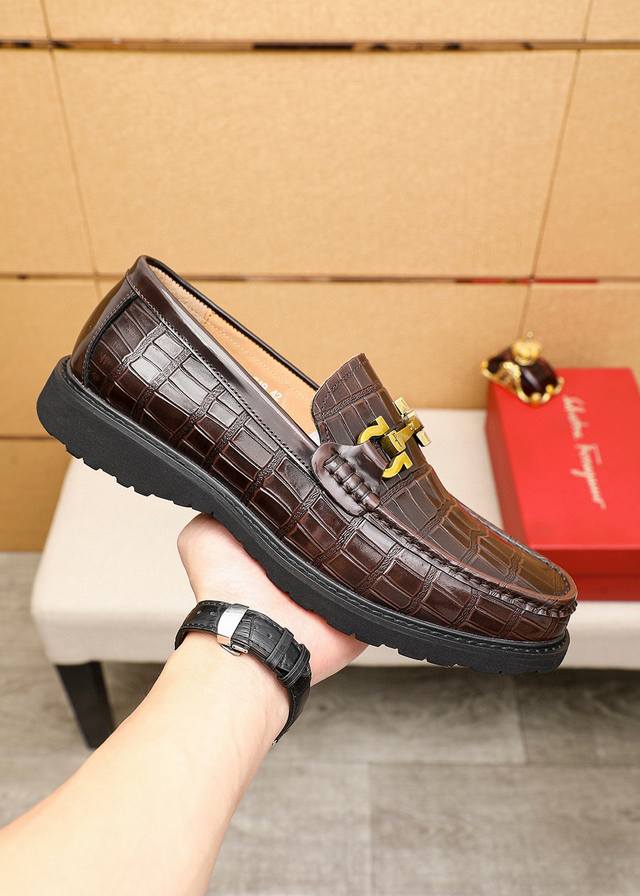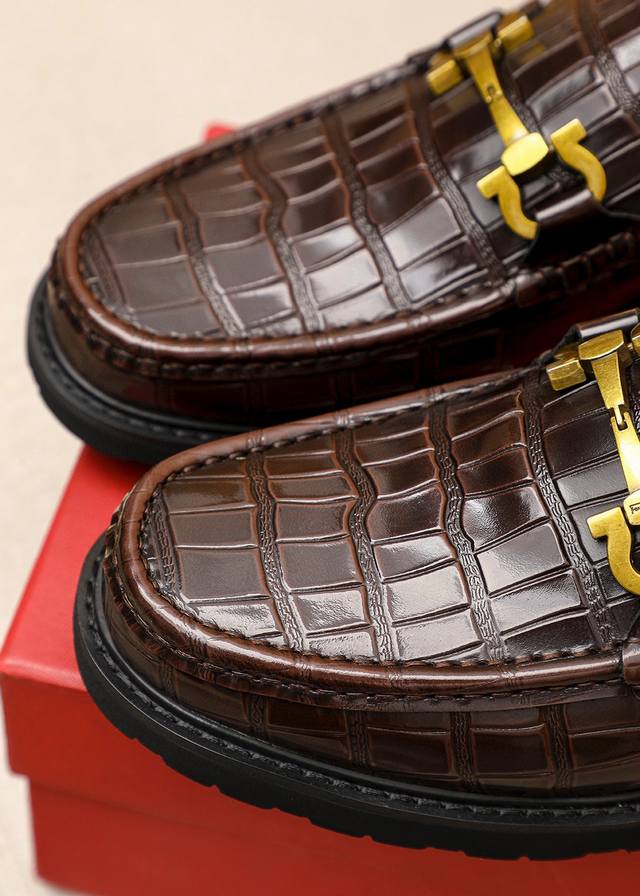 Product Trademark: Ferragamo Casual Leather Shoes True to Size: 39-44 45. Custom Made Materials: Selected imported top-grain calfskin embossed upper + luxurious hardware buckles, imported water-dyed cowhide lining. Strong three-dimensional visual effect, original rubber outsole. Colors: 3 colors available.