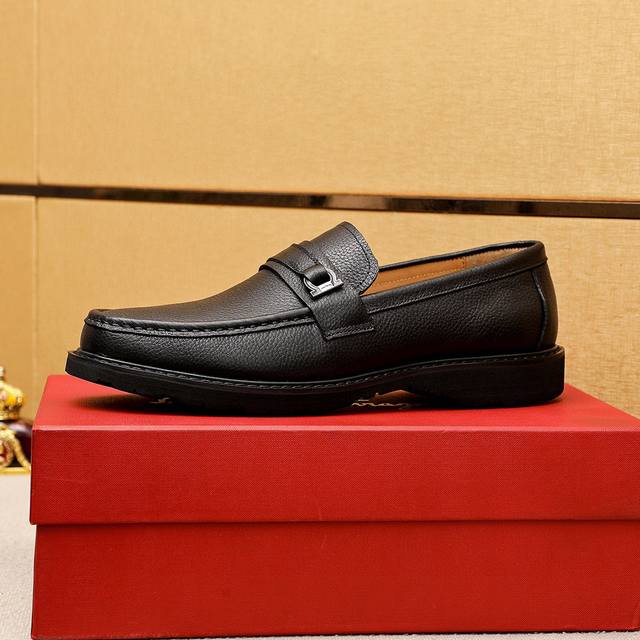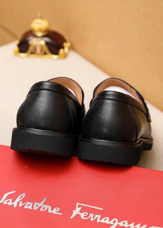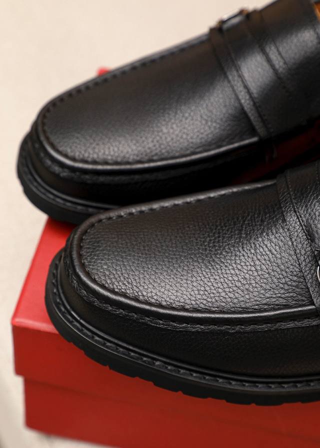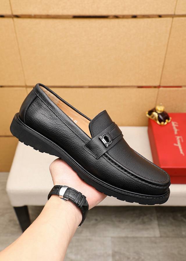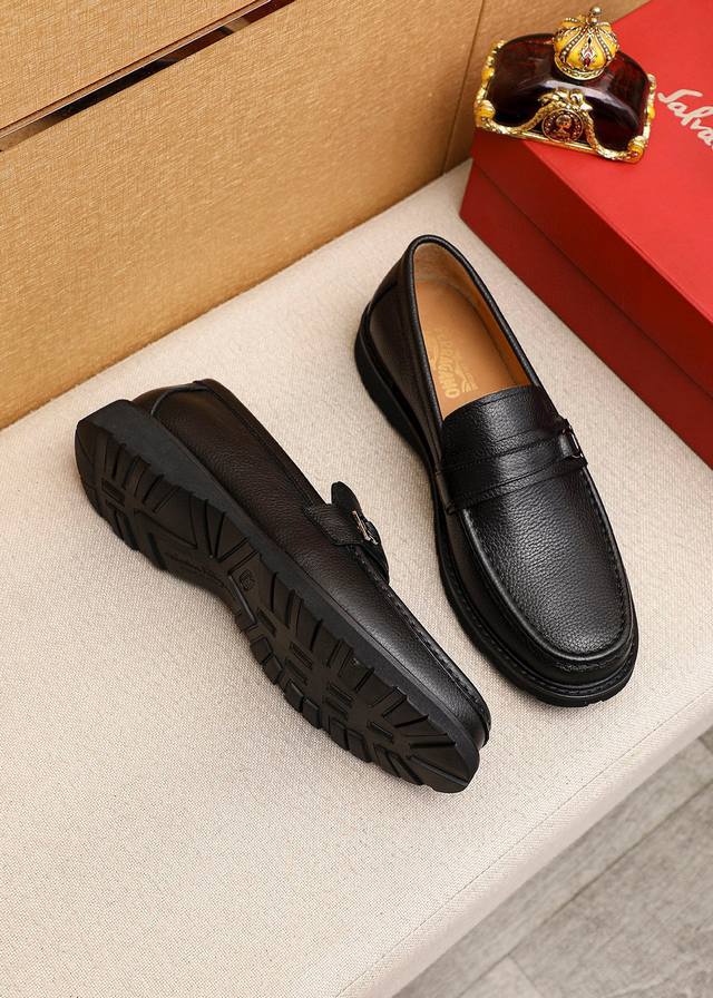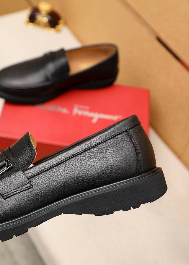 Product Trademark: Ferragamo Casual Leather Shoes True to Size: 39-44 45. Custom Made Materials: Selected top-grain lychee-textured cowhide upper + classic hardware buckle, imported water-dyed cowhide lining. Strong three-dimensional visual effect, original rubber outsole. Colors: 2 colors available.