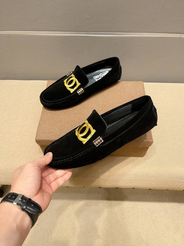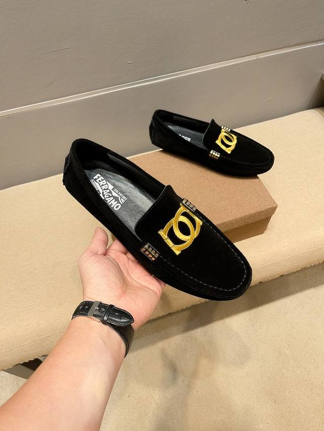 Real Price, Ferragamo Official Website New Arrival + Bestseller, Upper made of genuine Italian embroidered suede cowhide, sweat-absorbent genuine leather lining, original imported wear-resistant rubber sole, official website product, a must-have for men, simple and clean silhouette, exquisite craftsmanship. Comfortable to wear. Elegant design, whether focused on work, spending leisure time with family, or experiencing a refined lifestyle in the city or countryside, this series can showcase true masculine charm. Strive] Standard sizes 37-47 DDD