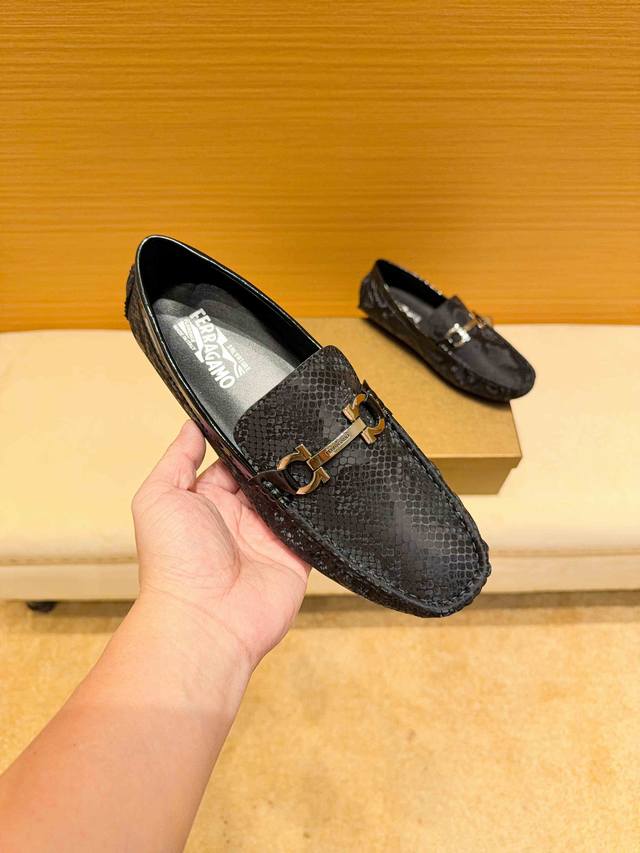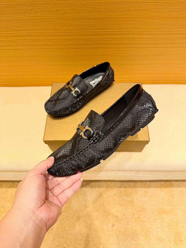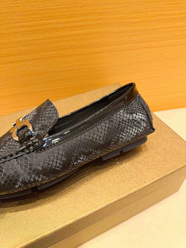 Real price, genuine materials, Ferragamo official website new style + best-selling style, popular with Italian supermodels and aristocrats, Ferragamo is a leader in the fashion world, unsurpassed, high-quality premium men's loafers on the market. Celebrity style, original, using imported original python skin + original cowhide lining, genuine materials, French hall-of-fame style, priced at 9110 Swiss Francs, runway style at Paris Fashion Week, a brand can deeply resonate with you, a pair of shoes can also make you linger, wearing not only nobility, but also an aura. Standard size 37-47 DDD