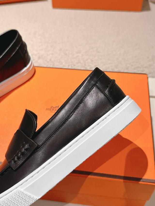 These calfskin and washed denim no-lace sneakers feature the iconic "H" detail. The simple and streamlined design creates a stylish urban look. Comfortable and versatile, a classic Hermes timeless style. Comes with exquisite boutique packaging