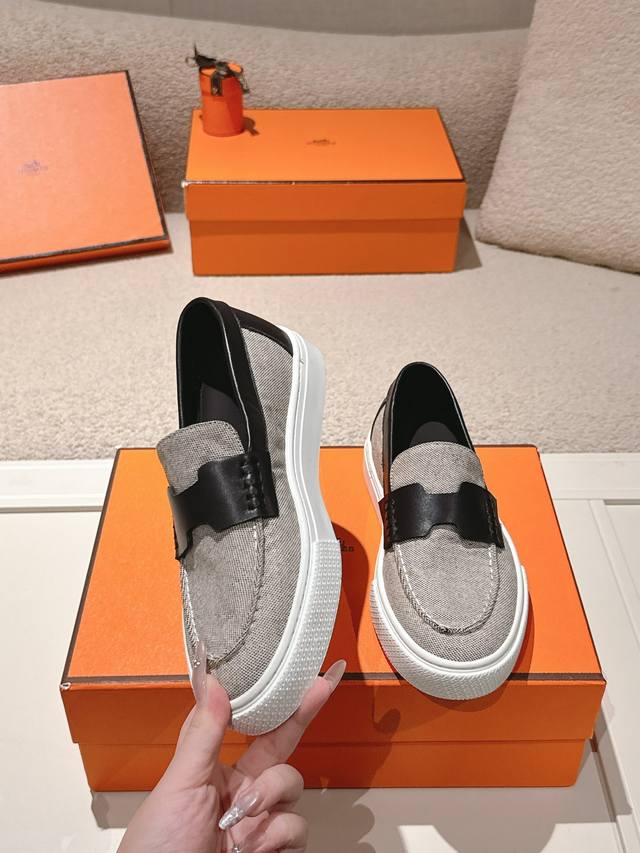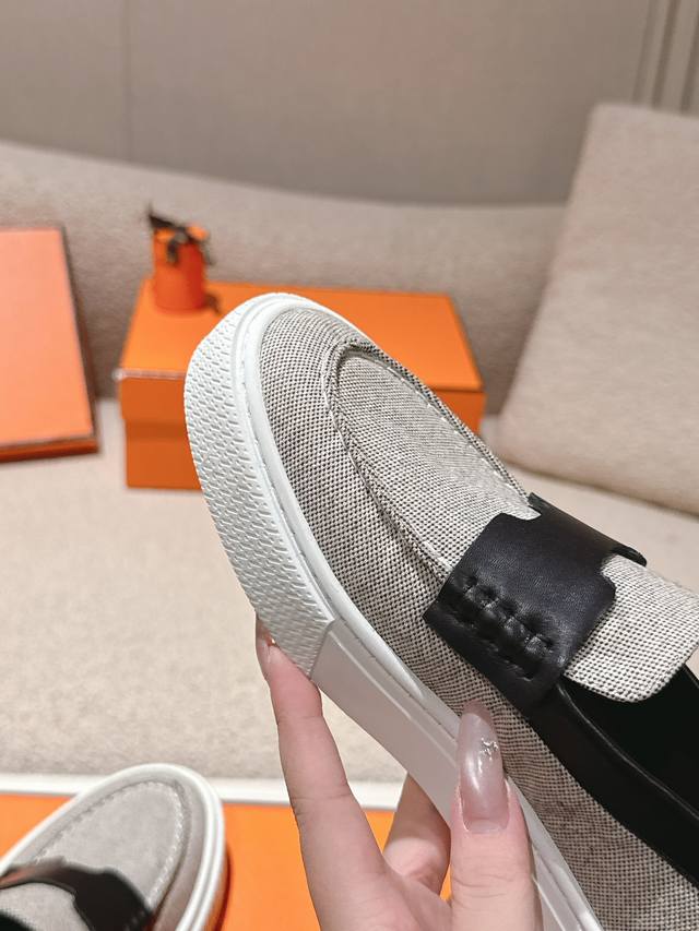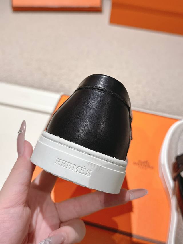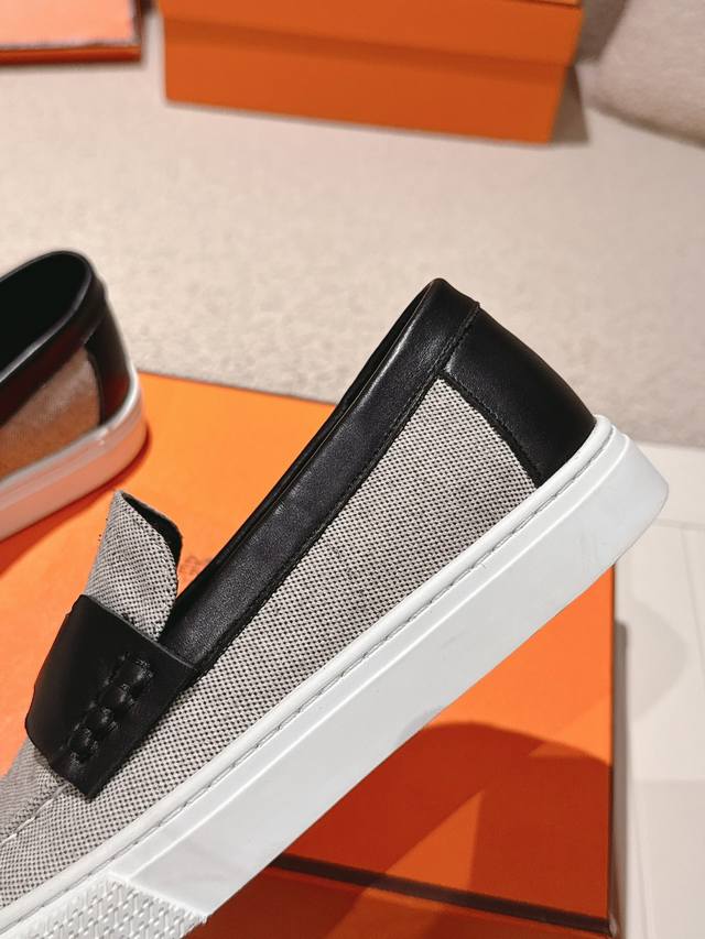 These calfskin and washed denim slip-on sneakers feature the iconic "H" detail. The simple, streamlined design creates a stylish urban look. Comfortable and versatile, a classic Hermes timeless piece. Comes with exquisite boutique packaging