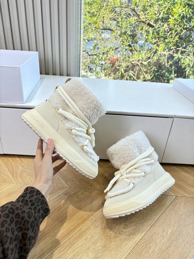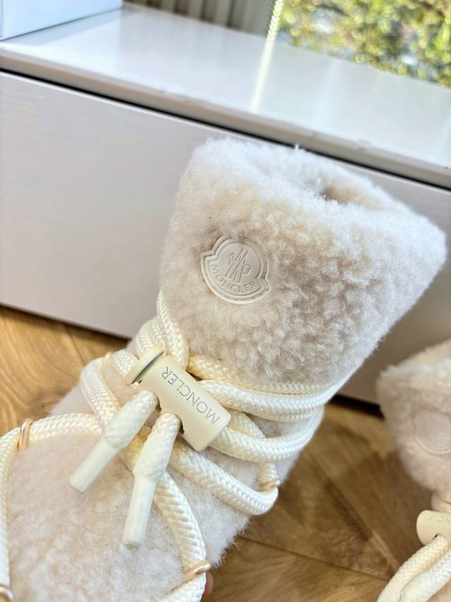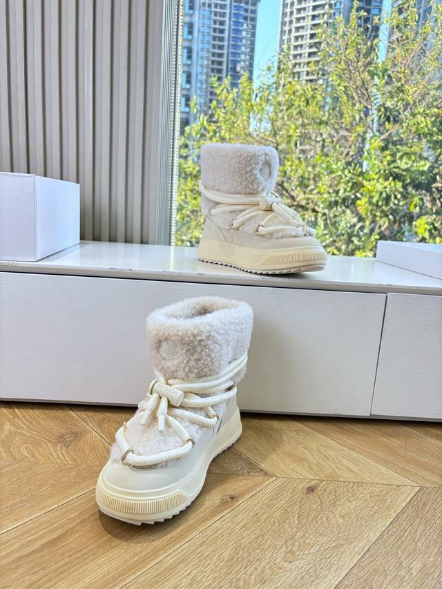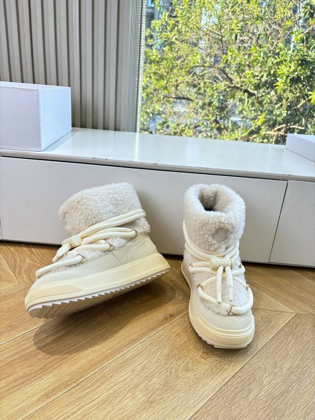 G036 What you see is what you get. Moncler 2025 Fall/Winter New Arrival Warm Down Boots. Original replica, details perfectly matched. Brand new fur boots, a trendsetter, very eye-catching, simple, versatile, and extraordinary. Upper: Wool. Lining: Vegetable-tanned wool lining. Sole: Original TPU combination outsole. Size: 35-41. 40.41 is custom-made and non-refundable.