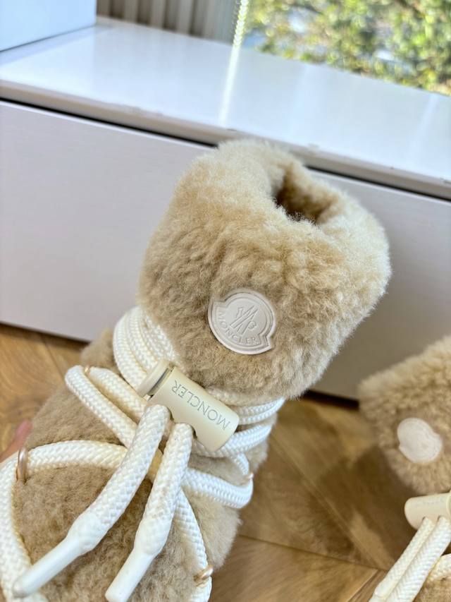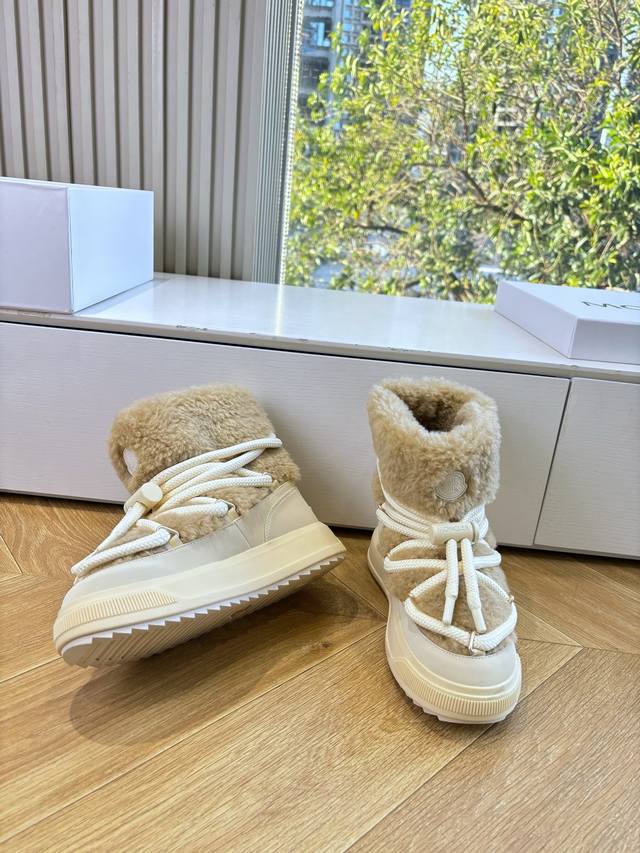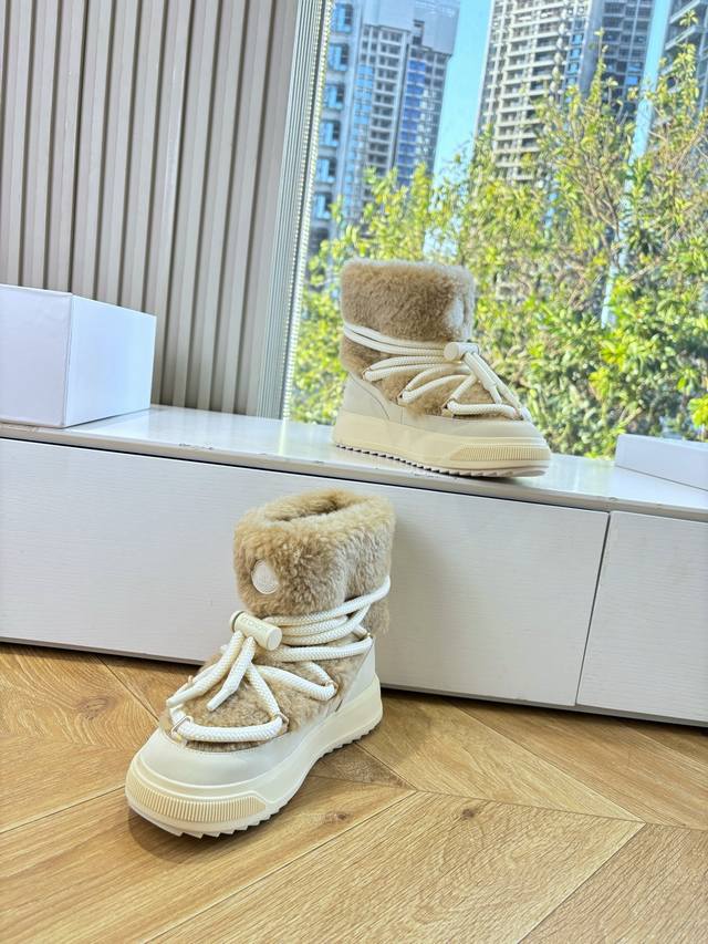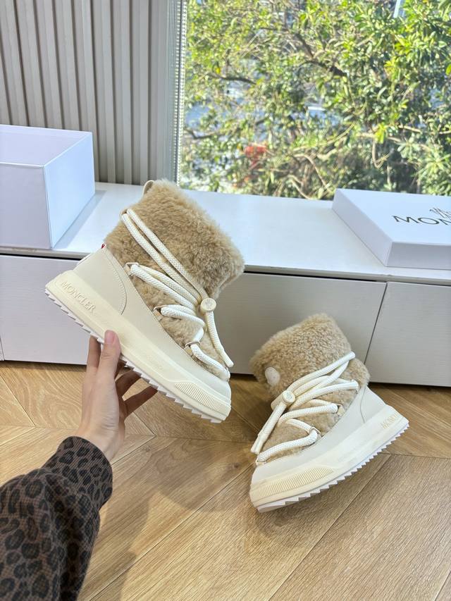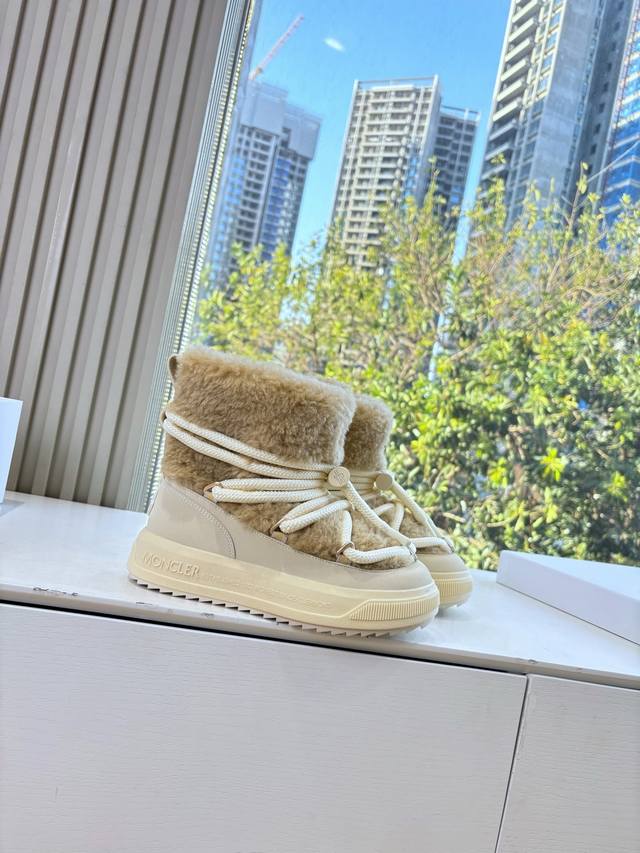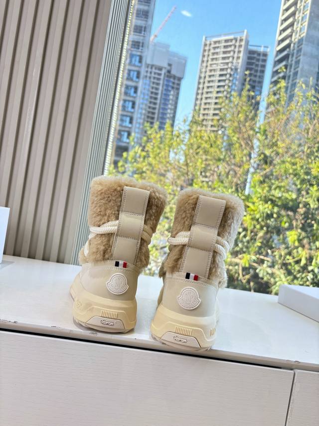 G036 What you see is what you get. Moncler 2025 Fall/Winter New Arrival Warm Down Boots. Original replica, details perfectly matched. Brand new fur boots, a trendsetter, very eye-catching, simple, versatile, and extraordinary. Upper: Wool. Lining: Vegetable-tanned wool lining. Sole: Original TPU combination outsole. Size: 35-41. 40.41 is custom-made and non-refundable.