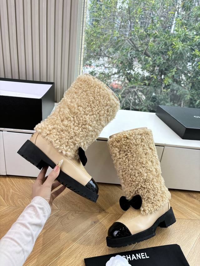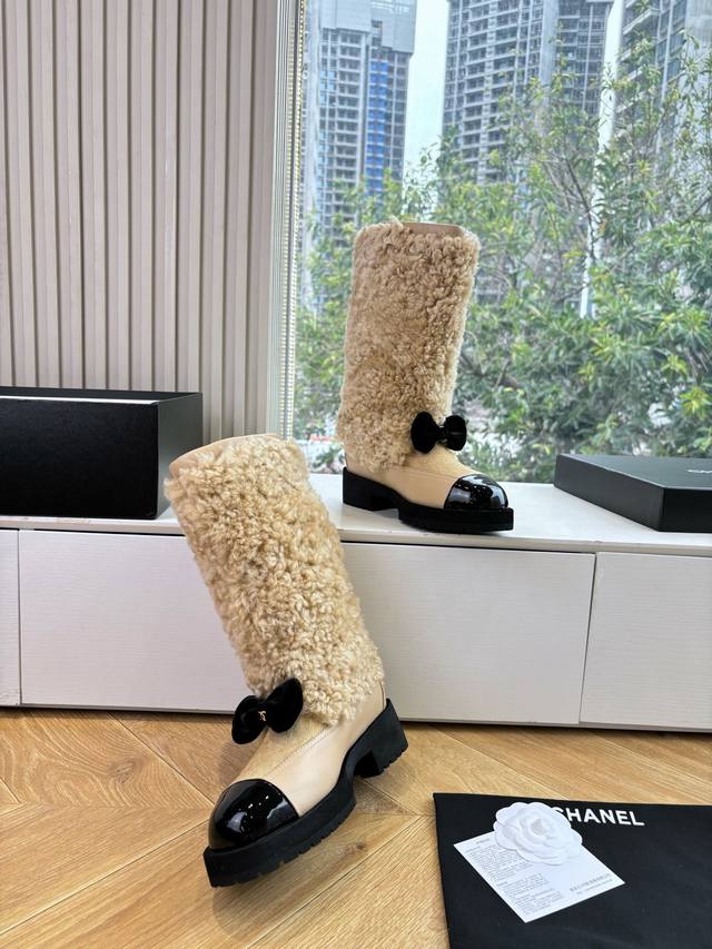 G059 Chanel * Small Chanel Autumn/Winter New Snow Boots, Riding Boots, Chelsea Boots. Truly a representative of cool and fashionable style. The Chanel logo embellishment on the boot shaft is understated yet luxurious! Simple, stylish, individualistic, and sophisticated! A natural and flowing aesthetic, it has a timeless beauty. Show off your long legs even in winter! Upper: Wool Leather Lining: Wool Sizes: 35-39, 40-41 (Custom orders, no returns or exchanges) Sole: Original molded sole