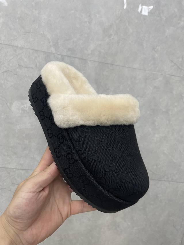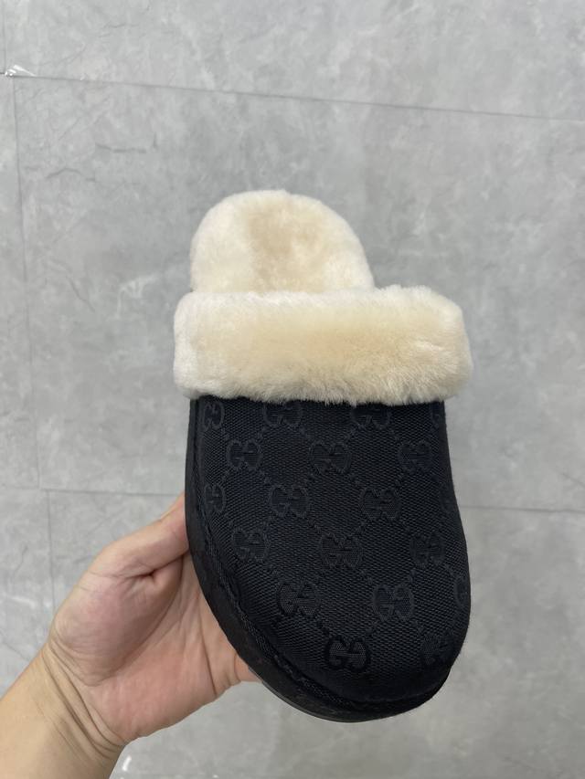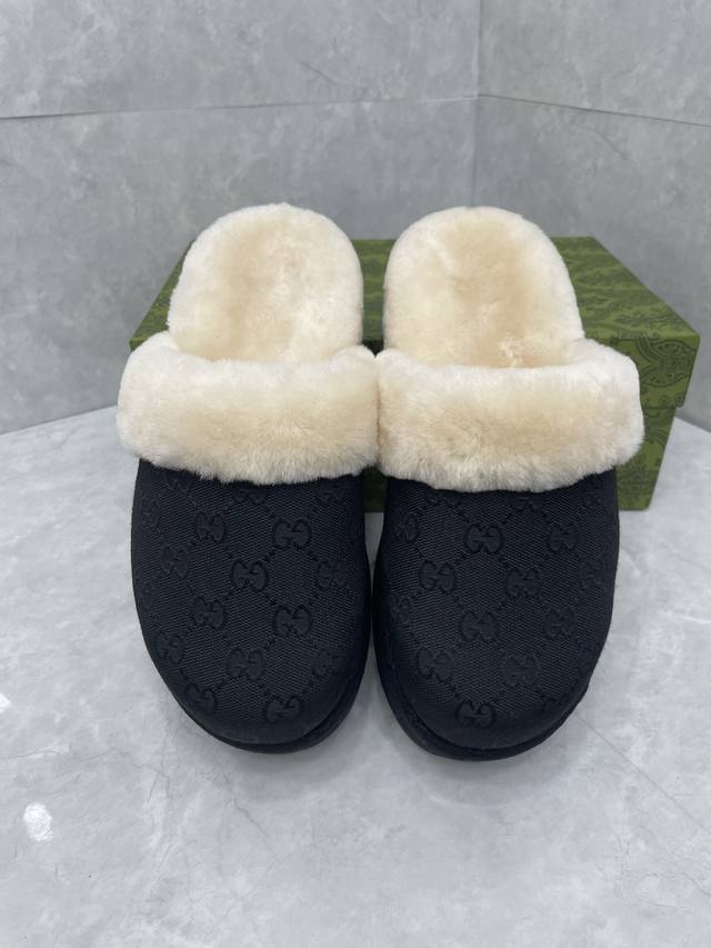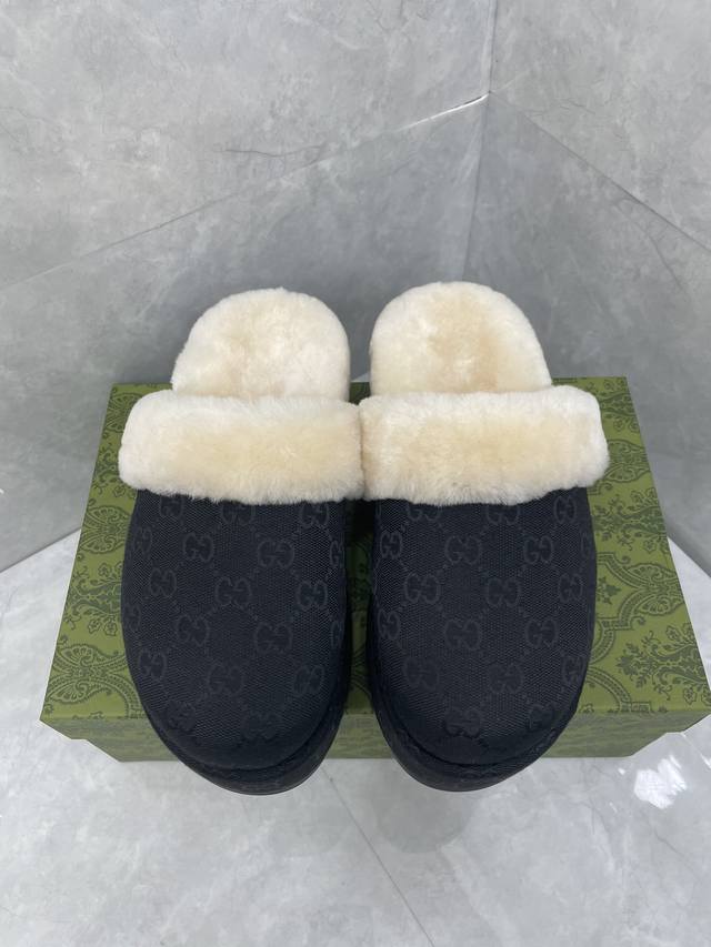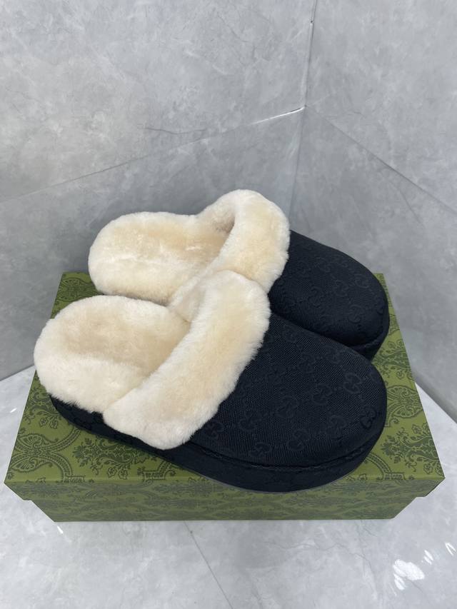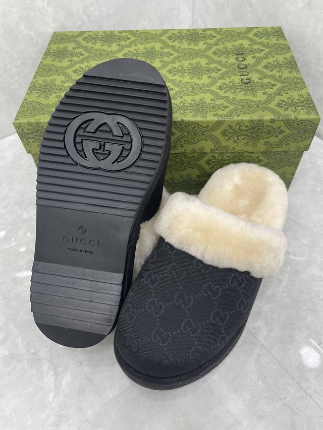 Gg Autumn/Winter New Wool Slippers DDD The Gg logo, first used in the 1970s, evolved from the early Gucci diamond quilting that originated in the 1930s, and is a representative essence of Gucci's tradition. Reinterpreted in a bright and eye-catching color, the Gg logo adds a striking focal point to these sneakers. The sole features an embossed design highlighting Mr. Guccio Gucci's initials , emphasizing the brand's rich heritage. DDD Upper: Gg jacquard fabric DDD Lining: Sheepskin DDD Type: Women's slippers DDD Sole: Platform with rubber sole DDD Heel height: Low heel DDD Height: 5.5 cm DDD Made in Italy DDD Sizes: 35-44 DDD