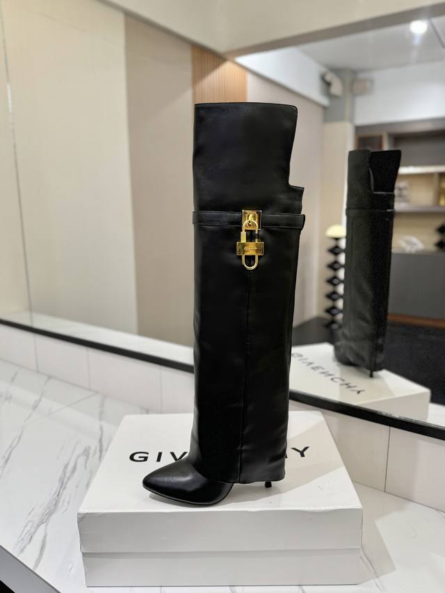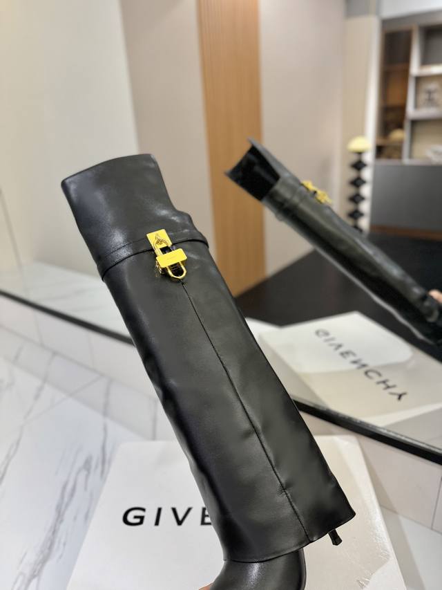 Authentic, custom-made Givenchy Shark Lock series over-the-knee boots, the highe