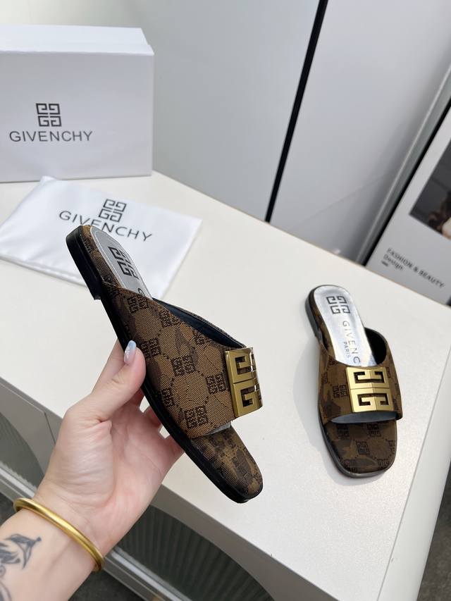 Givenchy peep-toe flat sandals are now available! Featuring the brand's signature metal buckle and a metallic silver leather insole, they exude a high-end, sophisticated look. The upper is made of top-grain cowhide, and the lining is sheepskin. Sizes 35-40 are available. Sizes 41-43 can be custom-made. DDD