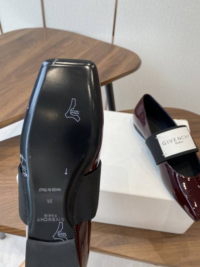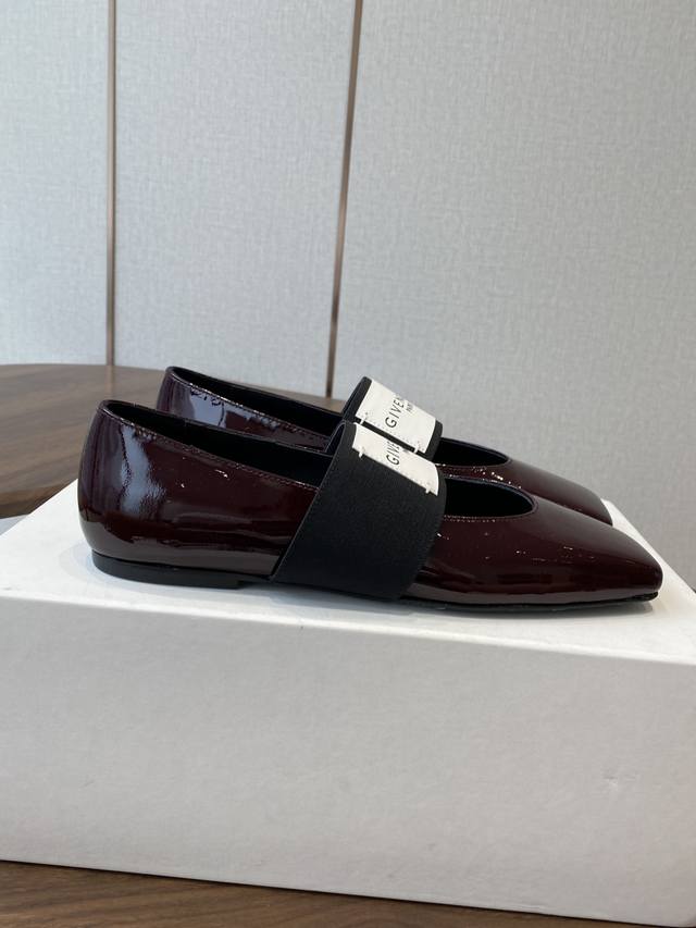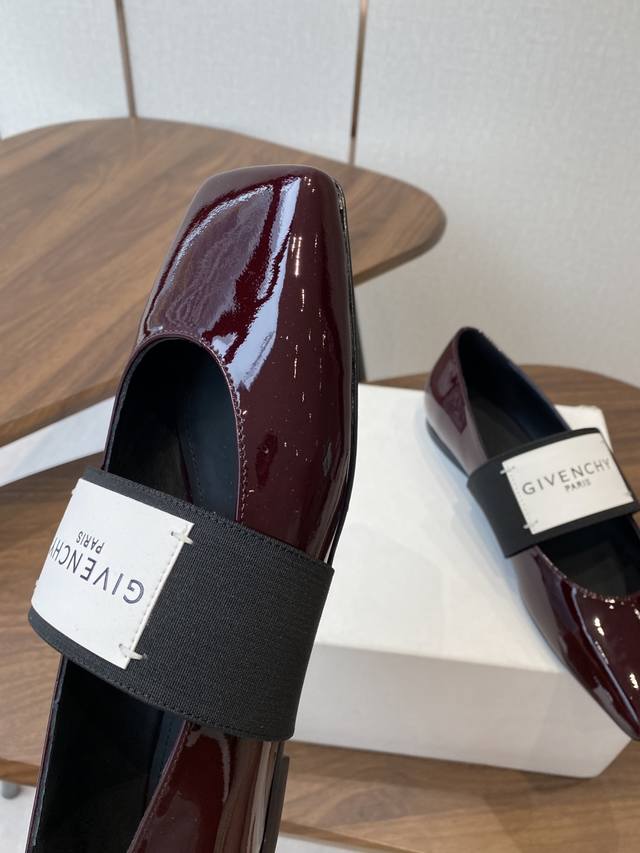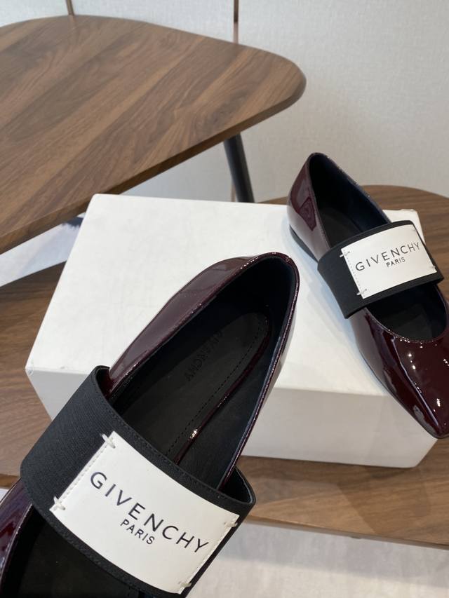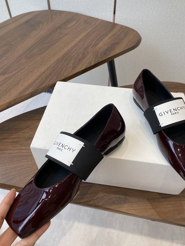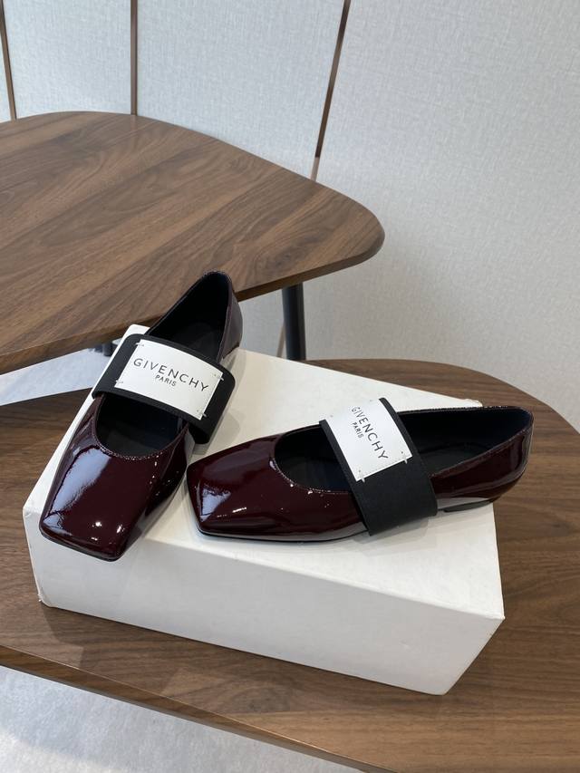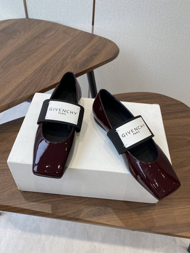 Givenchy Sliced Square Ballet Flats (Zhang Ruonan's Style) These square-toe ballet flats exude effortless elegance. Balancing style and extreme comfort, the elastic strap features the "Givenchyparis" logo for a unique touch. Pair them with skirts, trousers, or casual pants to perfectly showcase the elegant charm of ballet flats in different styles