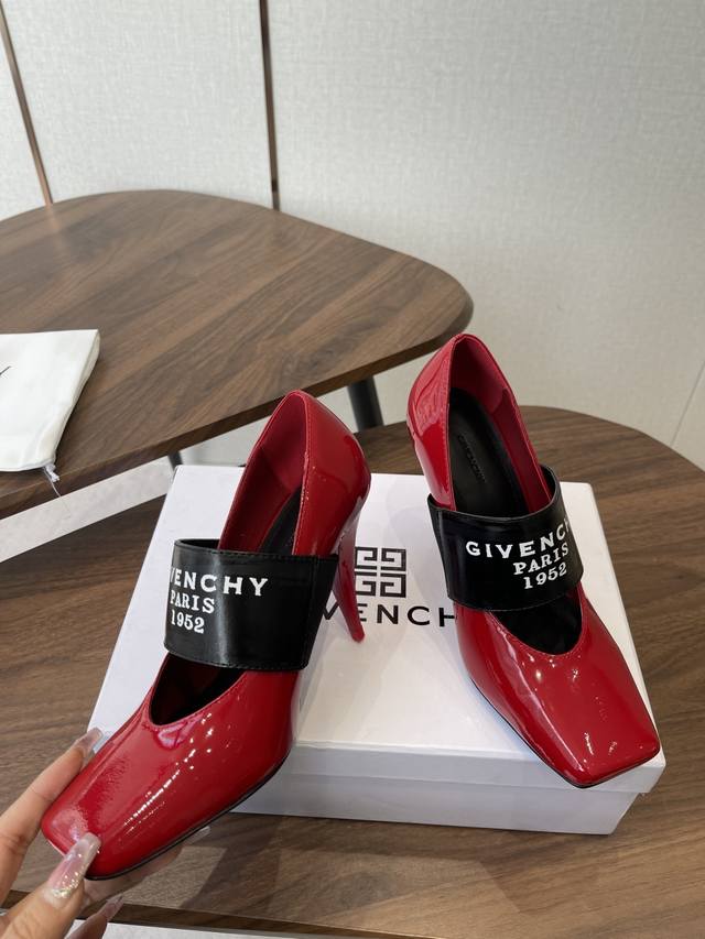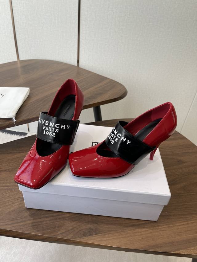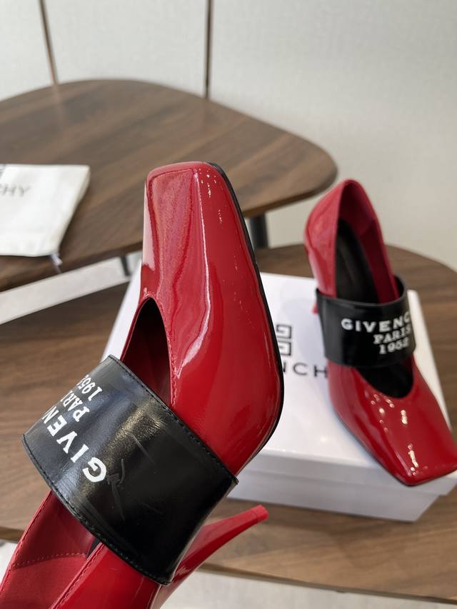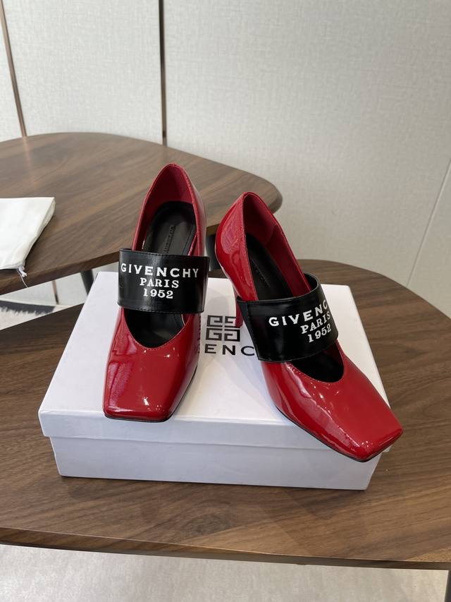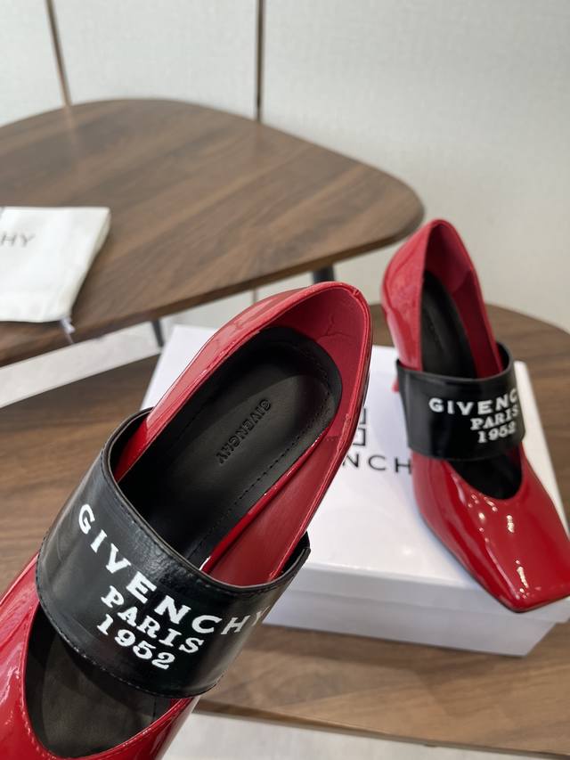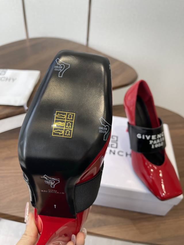 Givenchy Sliced Square Toe High Heels (Zhang Ruonan's Style) DDD The square toe design exudes effortless elegance. Balancing style and extreme comfort, the elastic strap adorned with the "Givenchyparis" logo adds a touch of personality. DDD Pairs perfectly with skirts, trousers, or casual pants, showcasing the elegant charm of ballet flats in various styles