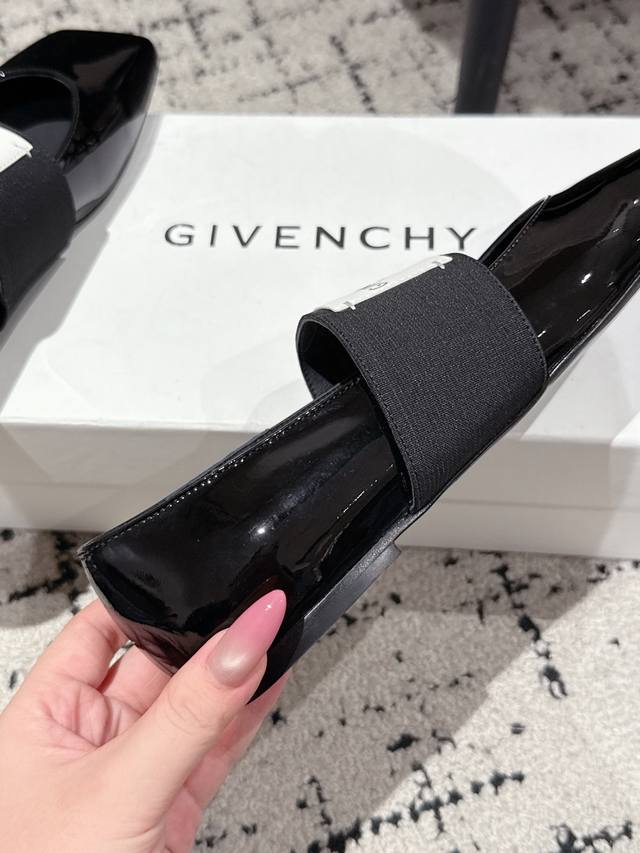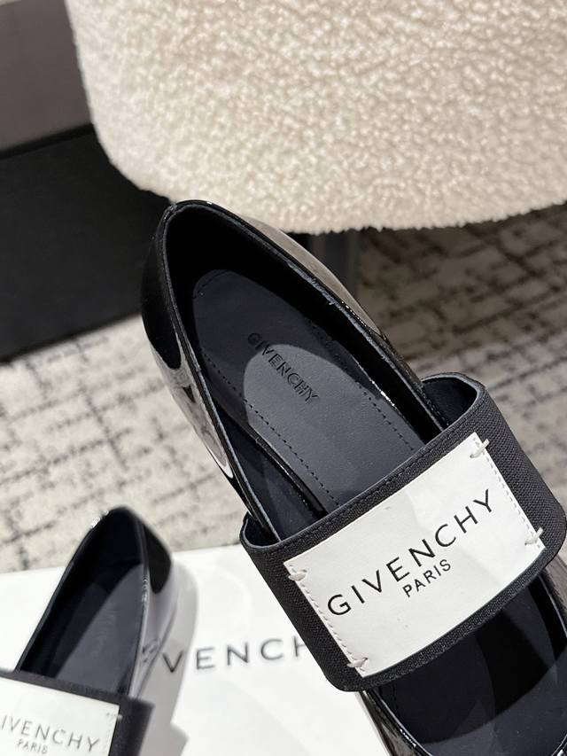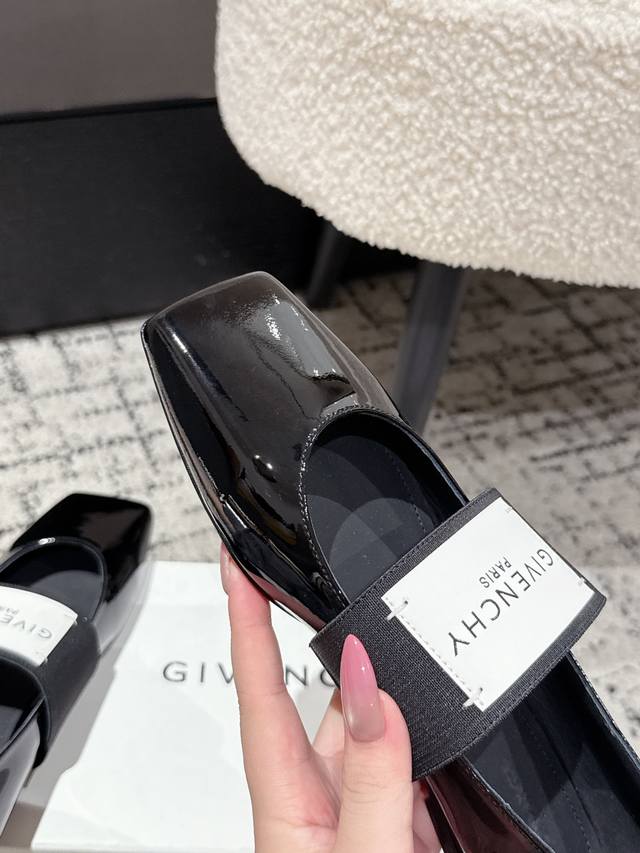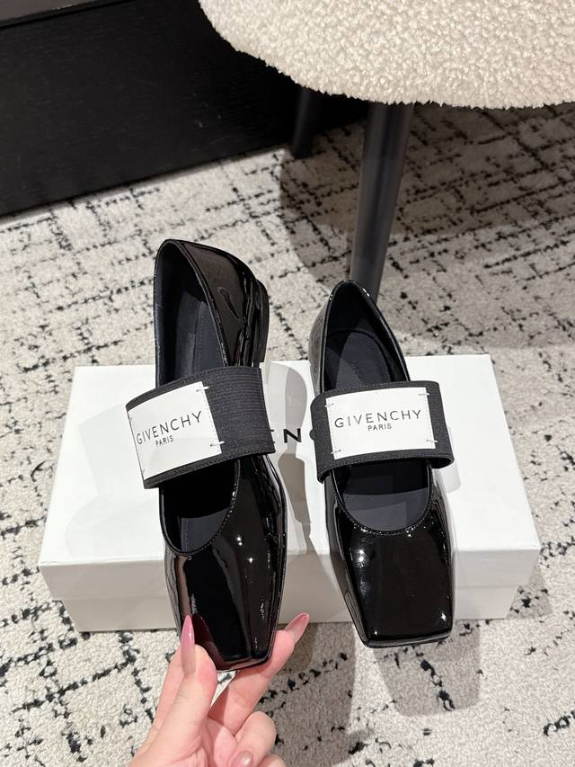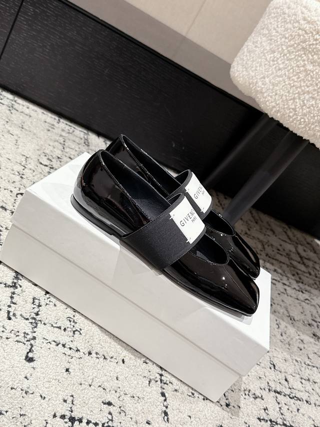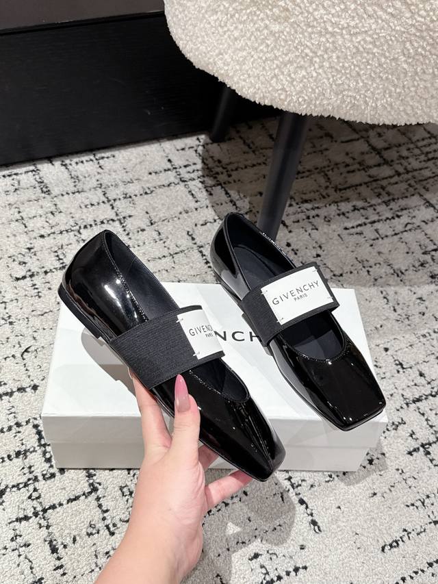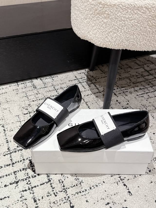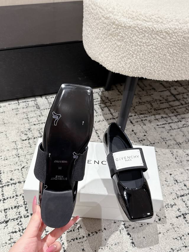 Top-tier version Givenchy 25, latest Zhang Ruonan style Sliced Square Mary Jane ballet flats. Square toe for effortless elegance. Balancing style and extreme comfort, the elastic strap features the "Givenchyparis" logo for a unique touch. Pair with skirts, trousers, or casual pants for a perfect look that exudes ballet elegance in various styles