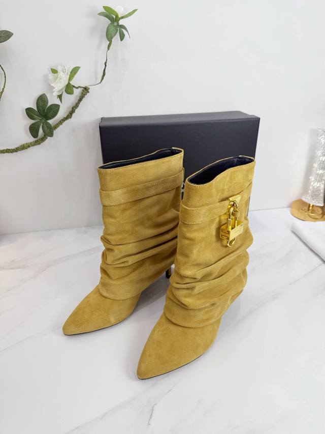 Factory Direct Release 2025 Sss Givenchy Spring/Summer New Arrival - Single Shoes & Boots. The brand's signature retro elegance remains unchanged, easily complementing various styles. Features: 1. Upper: Made of cow suede; 2. Lining: Imported sheepskin; 3. Outsole: Italian original genuine leather outsole; 9.0-inch heel height; 6-inch boot shaft; 4. Original label and insole. Available in sizes 35M-39M, 40, 41, 42. Custom orders are non-refundable and non-exchangeable.