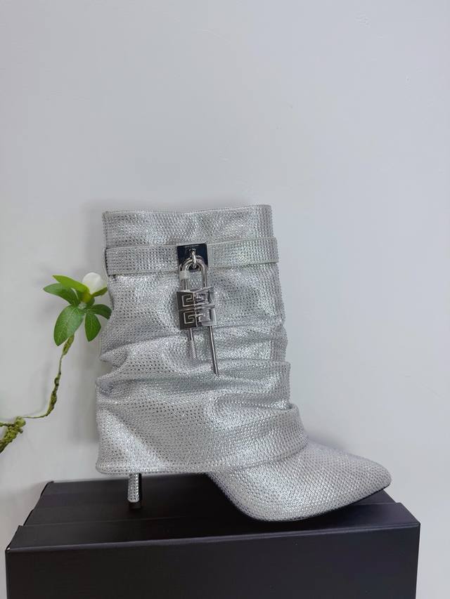 Factory Direct Release 2025 Sss Givenchy Spring/Summer New Arrival - Single Shoes & Boots. The brand's signature retro elegance remains unchanged, easily complementing various styles. Features: 1. Upper: Silk fabric with rhinestone embellishments; 2. Lining: Imported sheepskin; 3. Outsole: Italian original genuine leather outsole, 9.0cm heel height, 6-inch boot shaft; 4. Original label and insole. Available in sizes 35M-39M, 40, 41, 42. Custom orders are non-refundable and non-exchangeable.