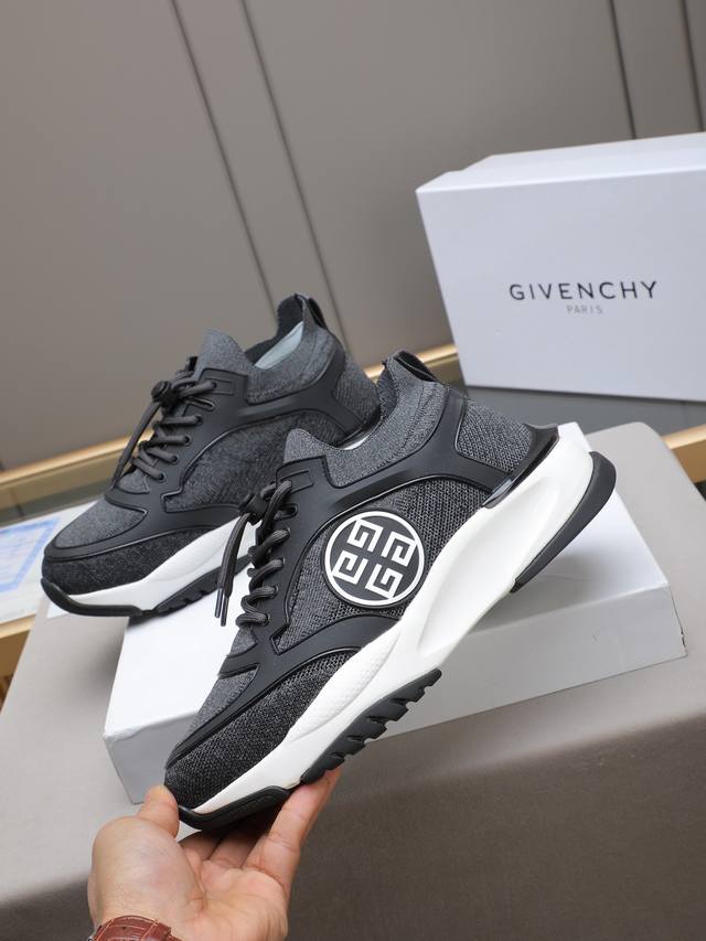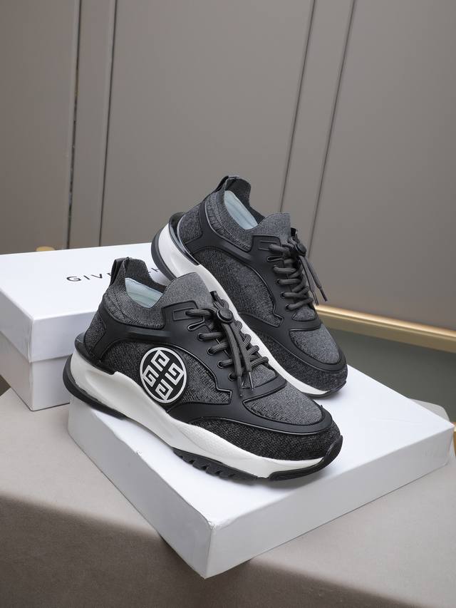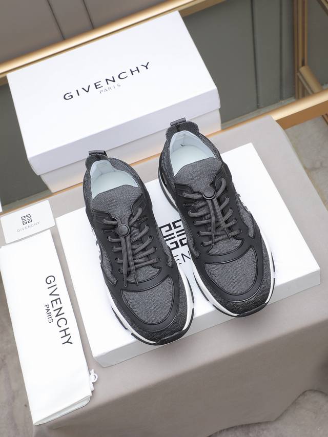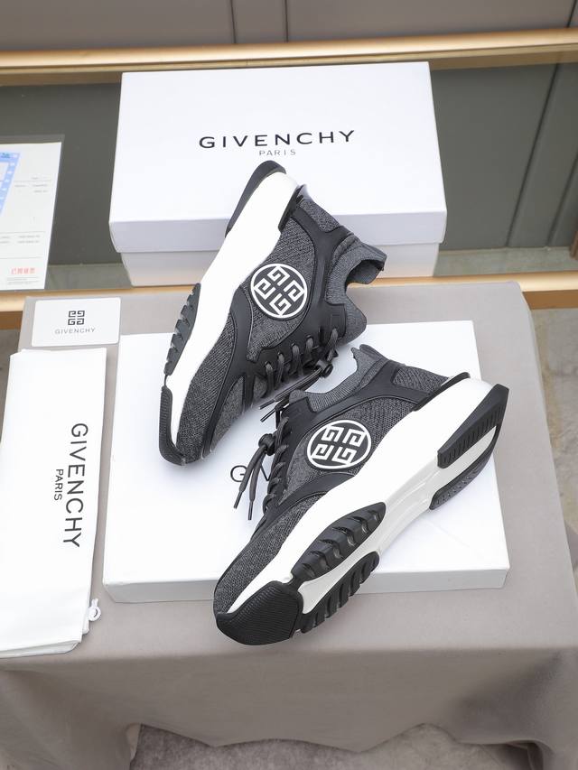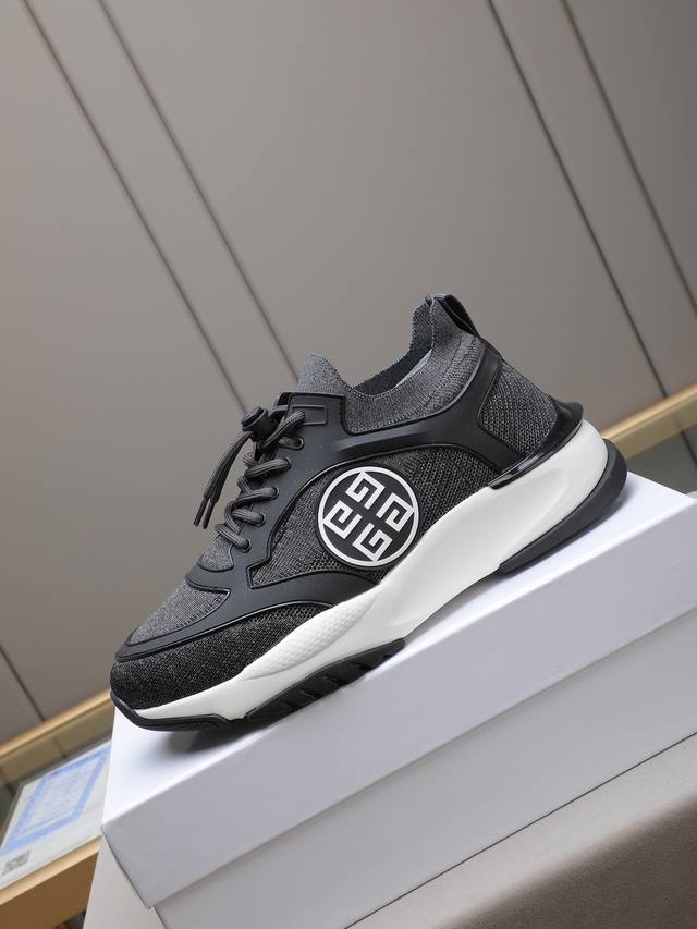 Givench*. Men's platform casual shoes, made with imported high-elasticity flyknit epoxy resin, featuring a color-blocked design, side brand logo decoration, and three-dimensional composite stitching! High comfort! Sizes: 38-44, 45 (custom sizes available).