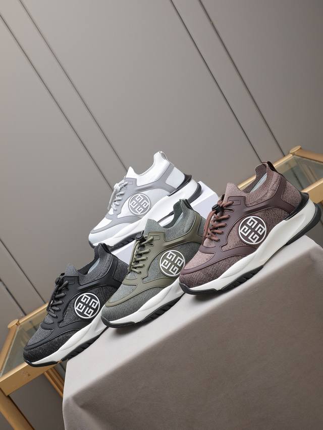 Givench*. Men's platform casual shoes, made with imported high-elasticity flyknit epoxy resin, featuring a color-blocked design, side brand logo decoration, and three-dimensional composite stitching! High comfort! Sizes: 38-44, 45 (custom sizes available).