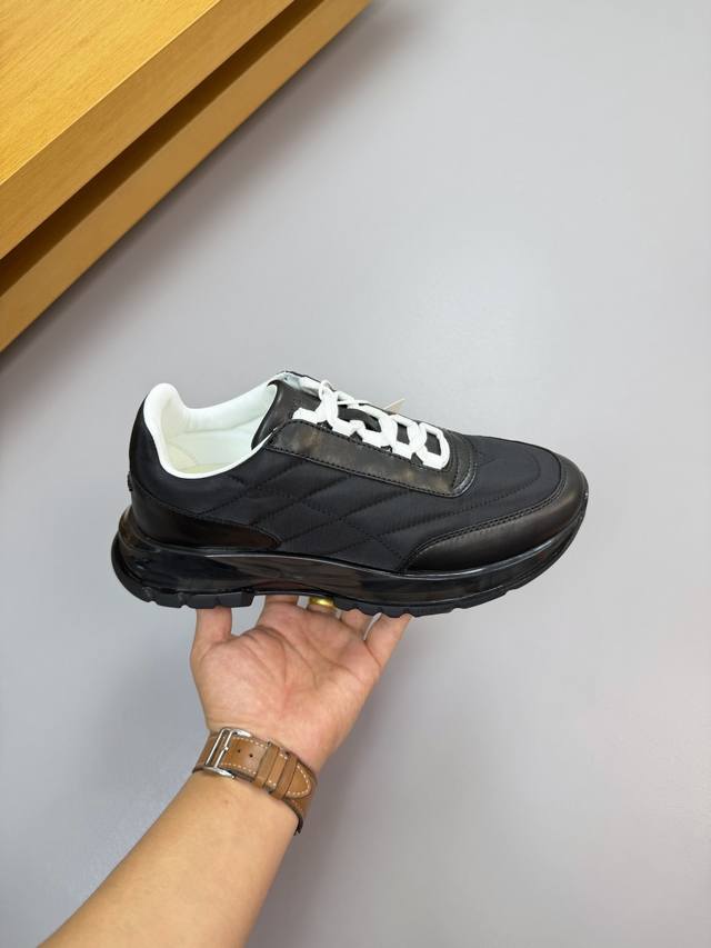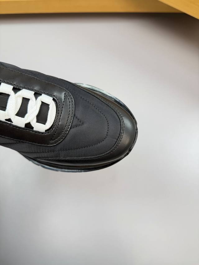 - Upper: Nappa calfskin, brand high-gloss canvas with stitching, tongue with air-pressed brand logo, heel with injection-molded brand logo